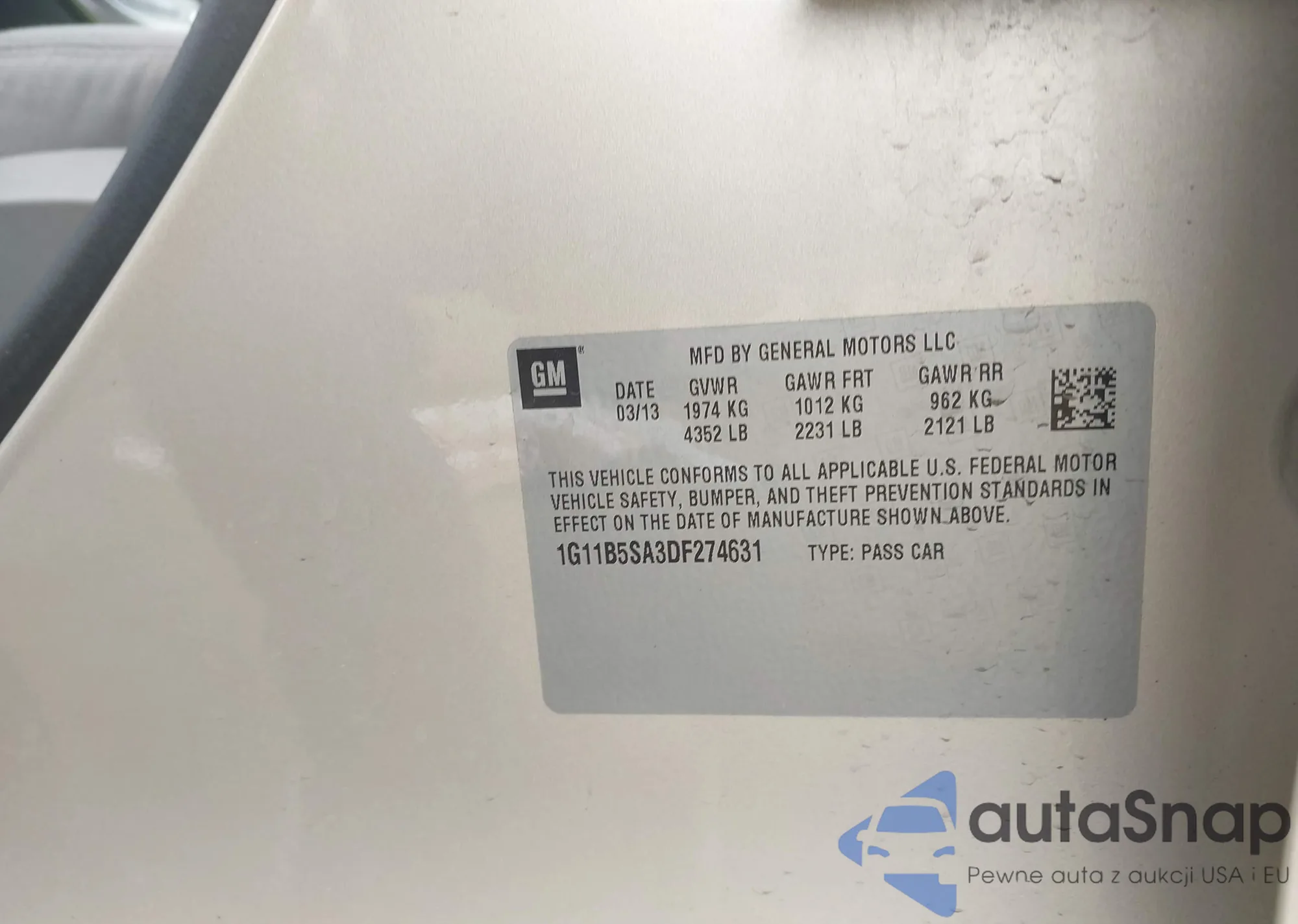 • VIN 1G11B5SA3DF274631