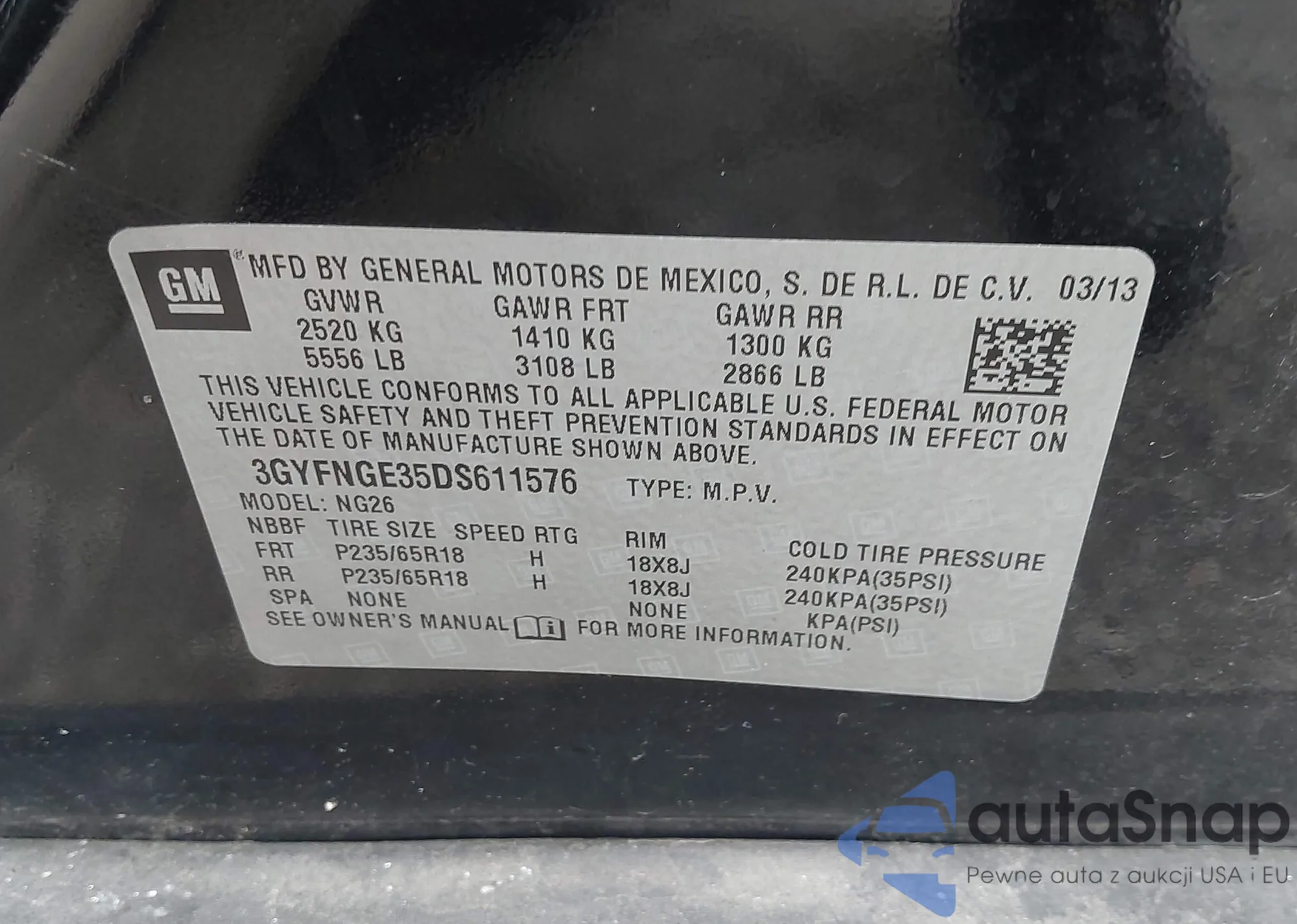 LOT: 43061642 VIN: 1G11B5SA3DF274631
