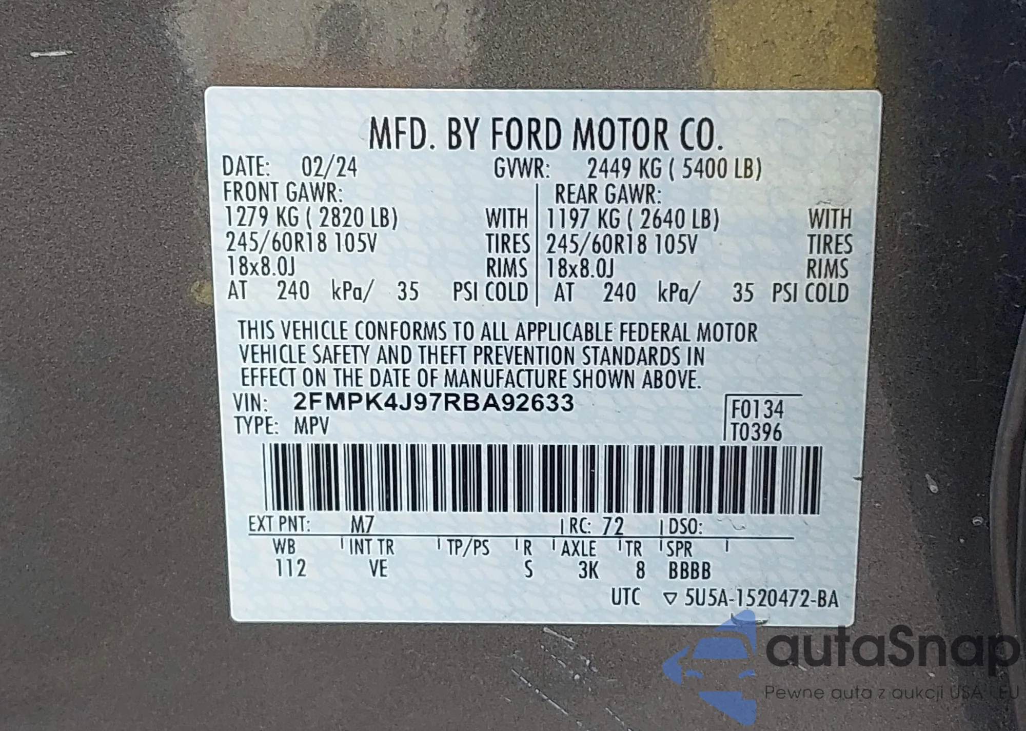 LOT: 42992174 VIN: SHSRD78895U319154