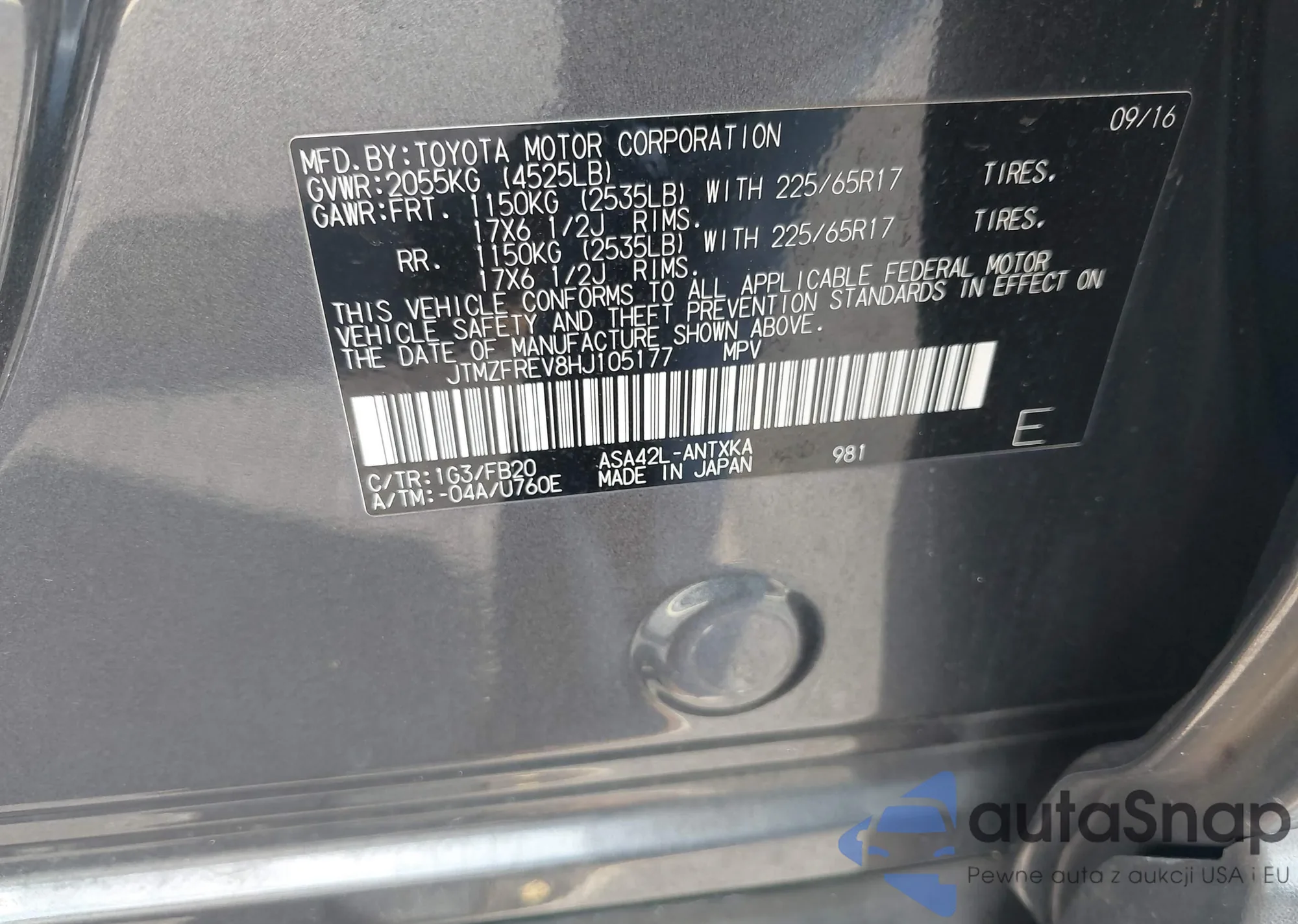 • VIN JTMZFREV8HJ105177
