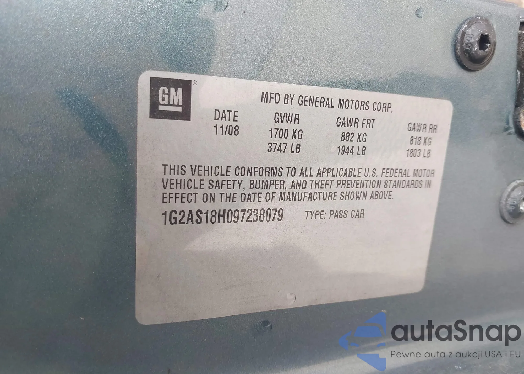 • VIN 1G2AS18H097238079