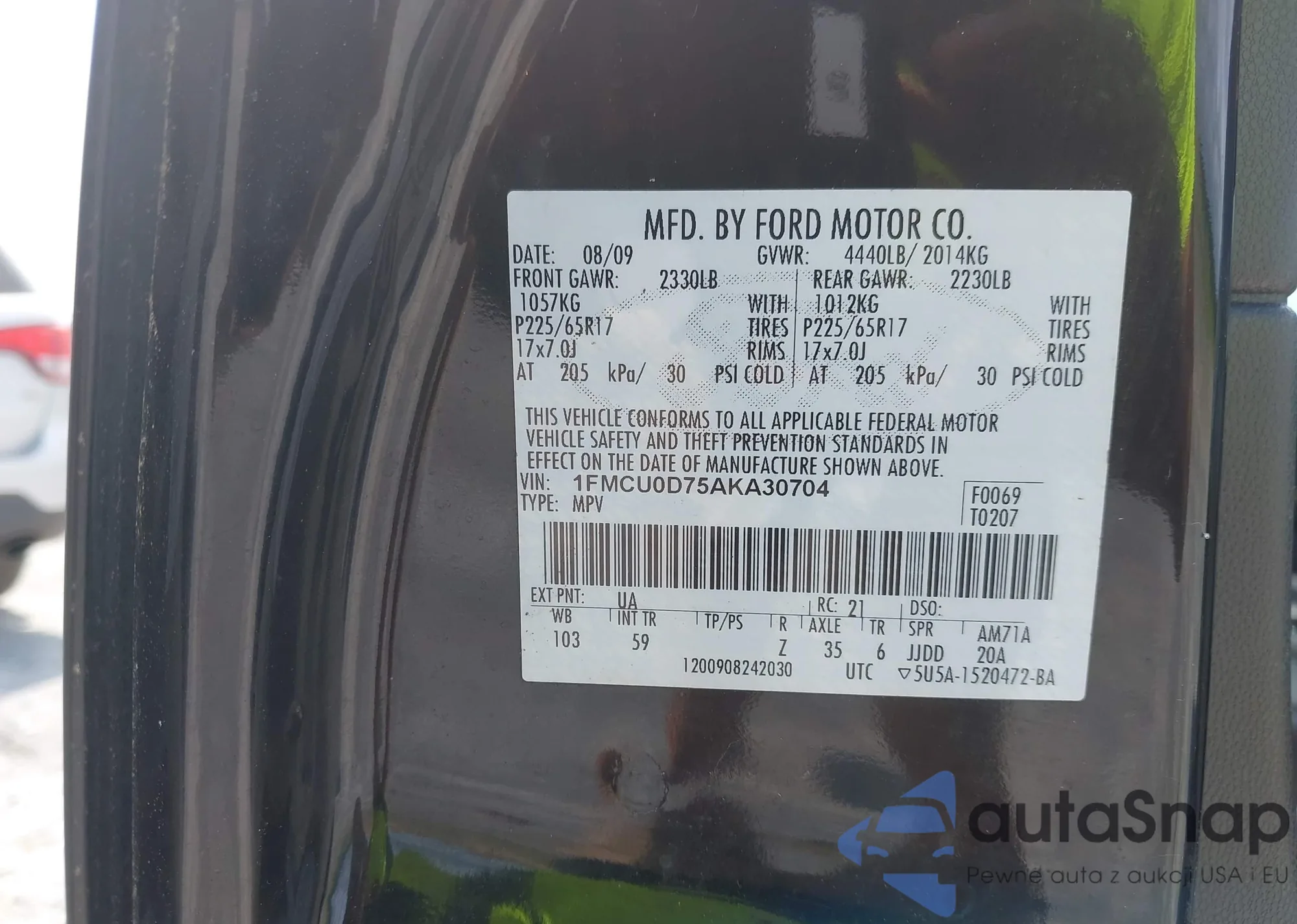 • VIN 1FMCU0J99EUA70946