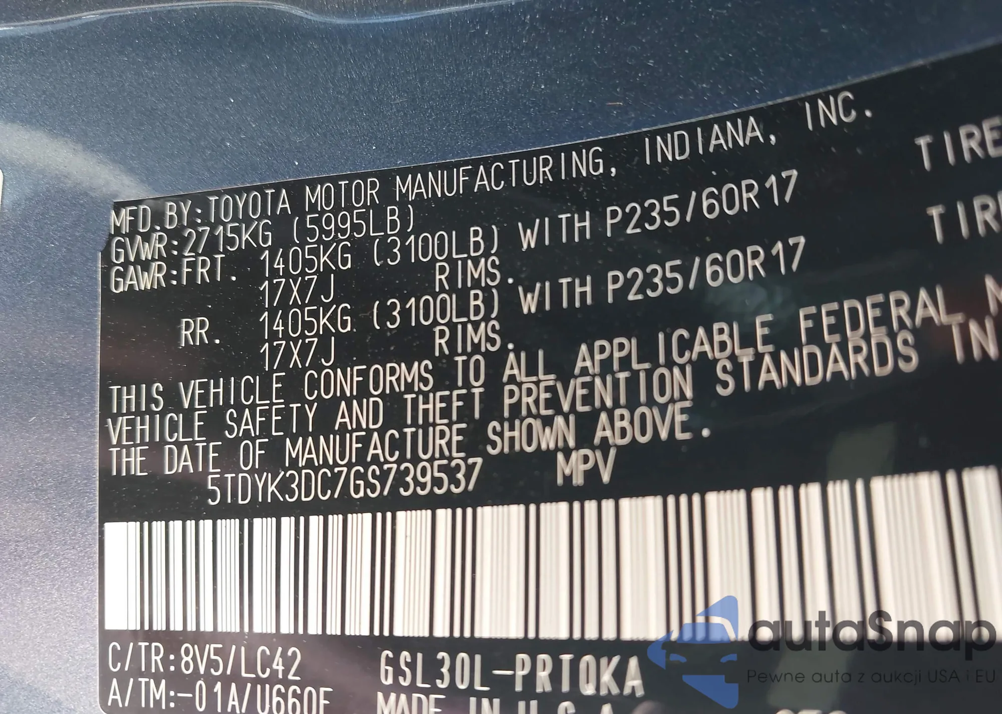 • VIN 5TDYK3DC7GS739537