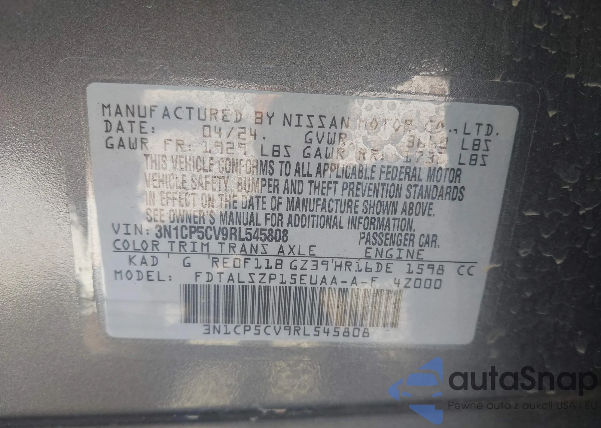 LOT: 43089765 VIN: 3N1CP5CV9RL545808