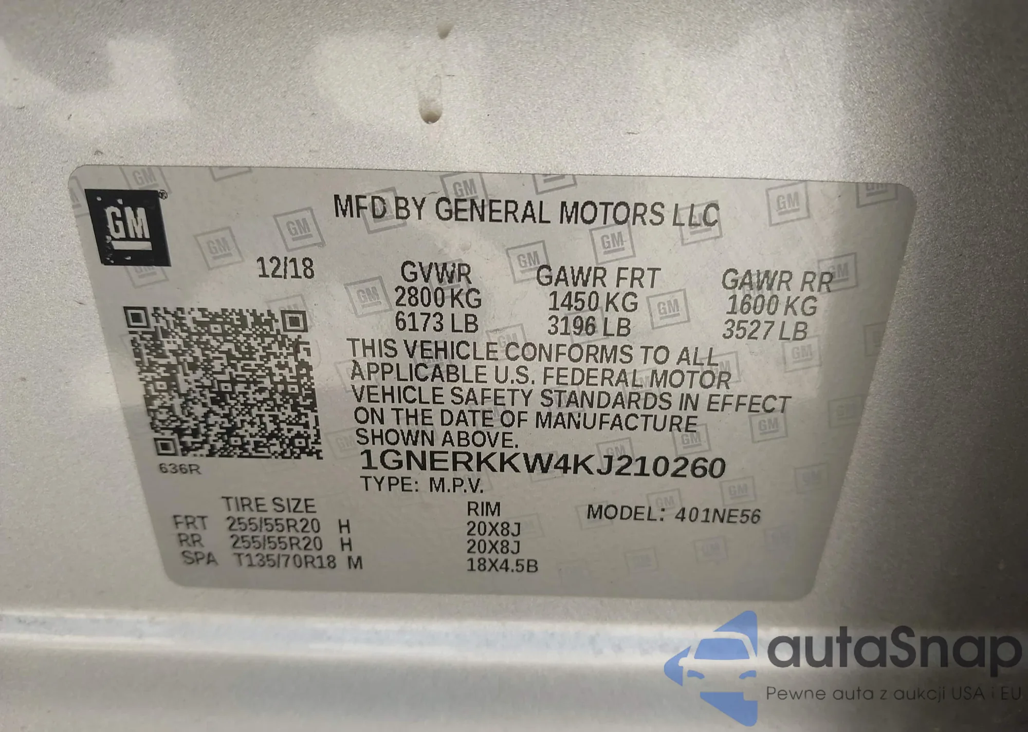 LOT: 43006717 VIN: 1GNERKKW4KJ210260