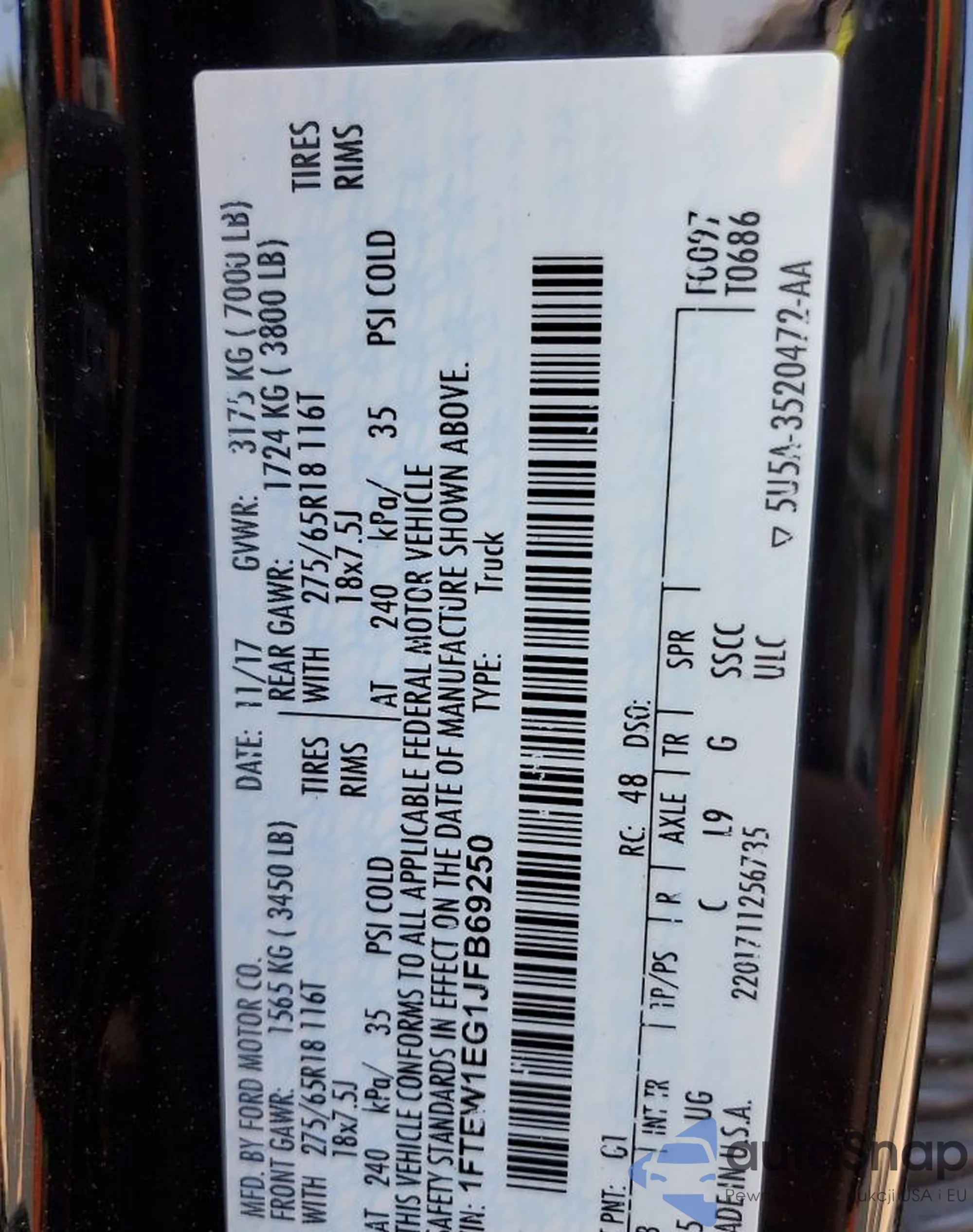 • VIN 1FTEW1EG1JFB69250