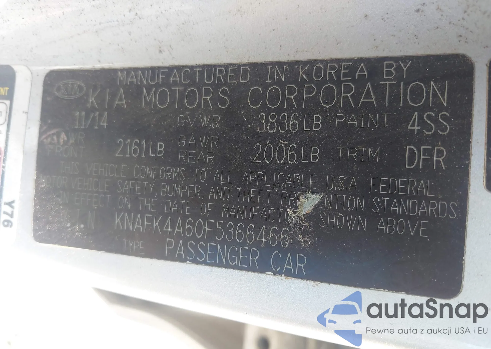 • VIN KNAFK4A60F5366466