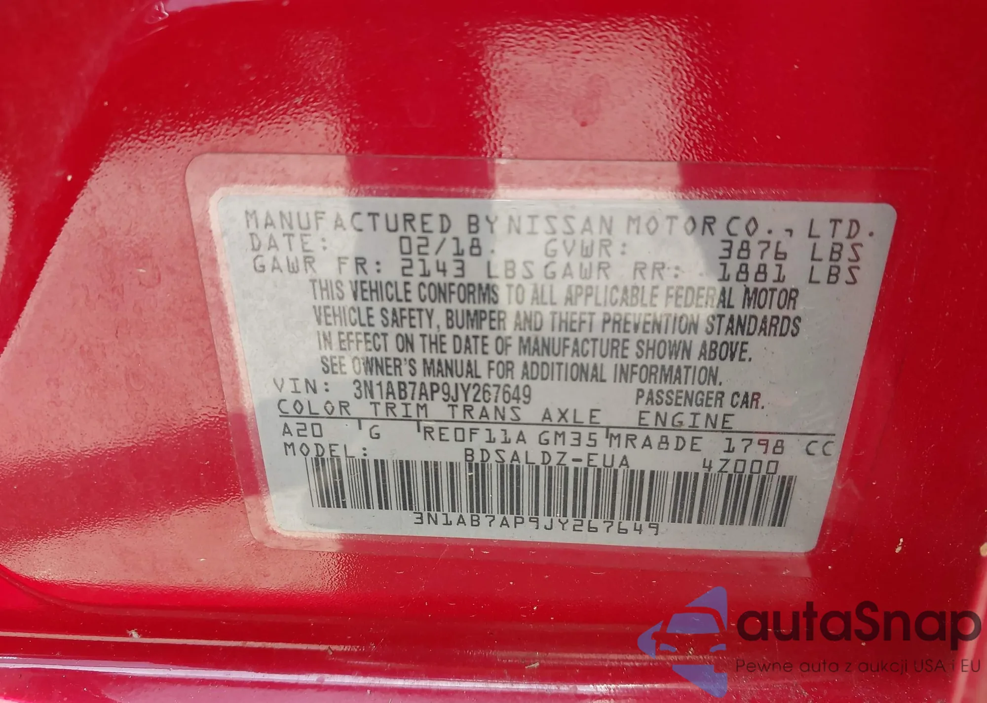 • VIN 3N1AB7AP9JY267649