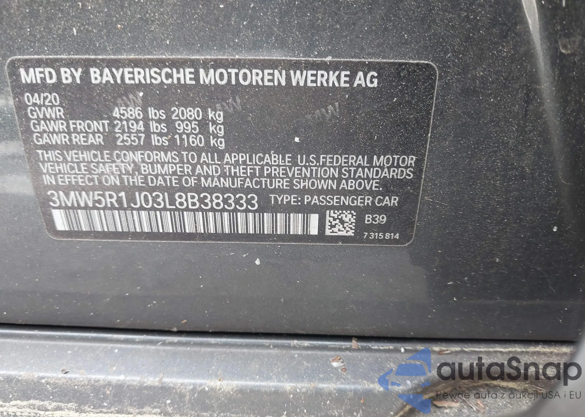 • VIN 3MW5R1J03L8B38333