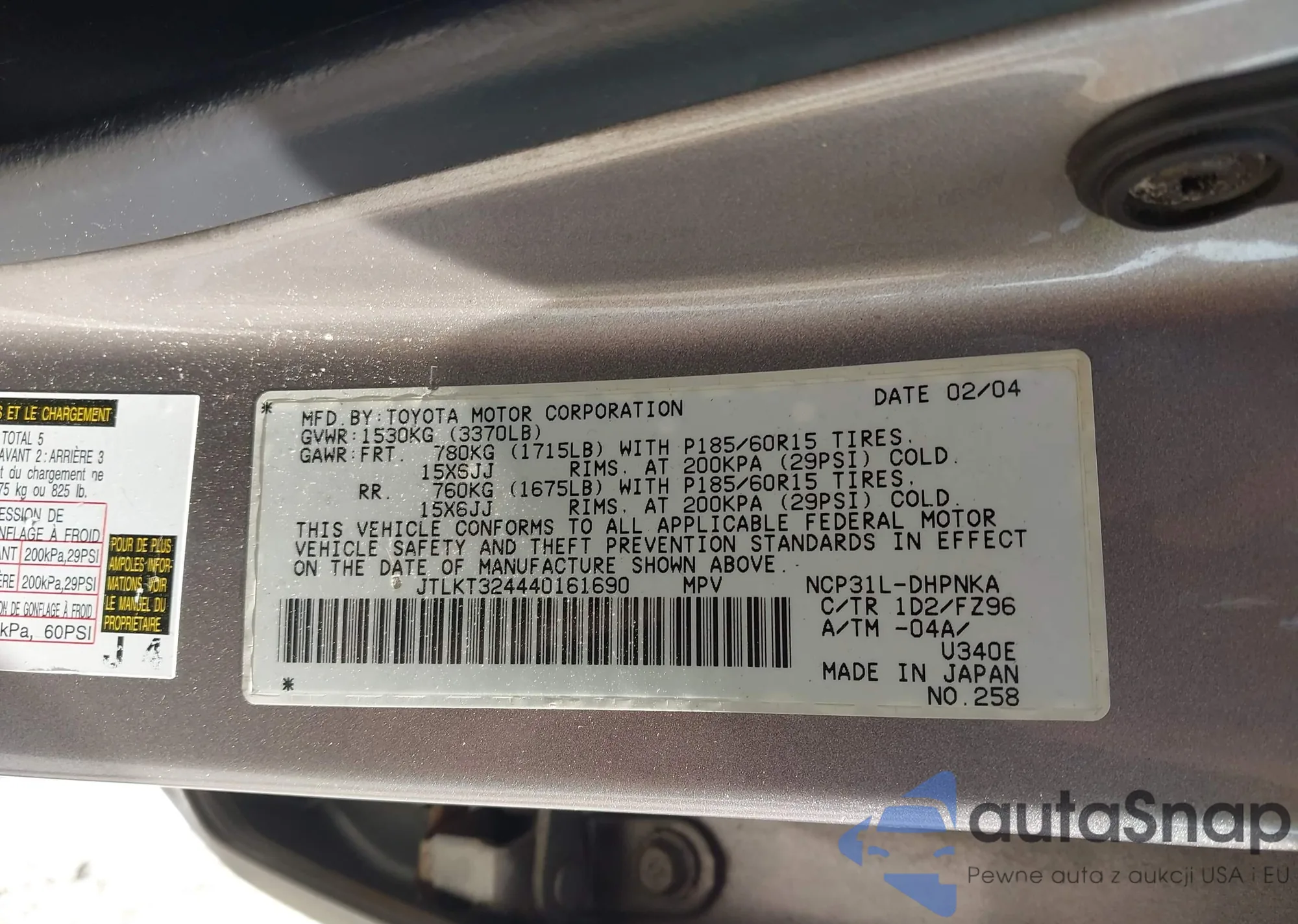 LOT: 42835793 VIN: JTLKT324440161690