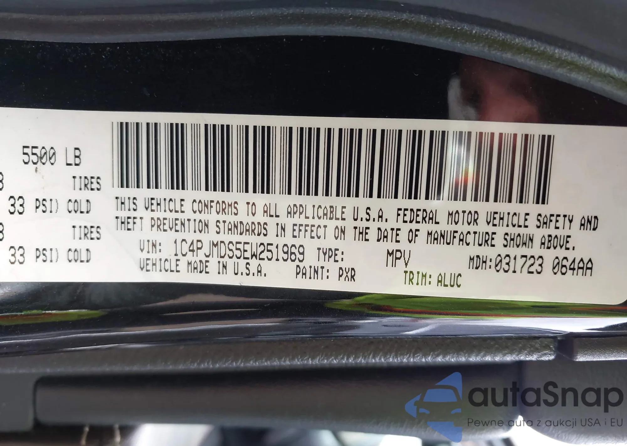 LOT: 41727479 VIN: 1C4PJMDS5EW251969