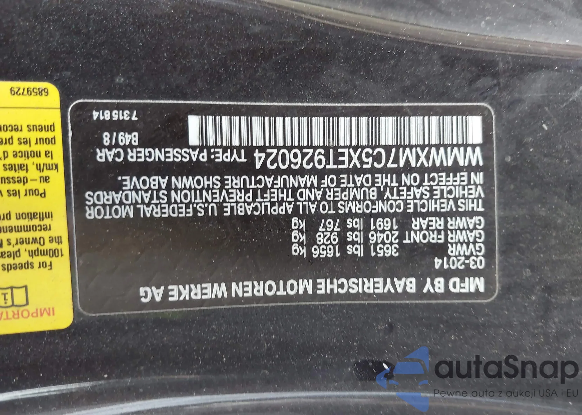 • VIN WMWXM7C5XET926024