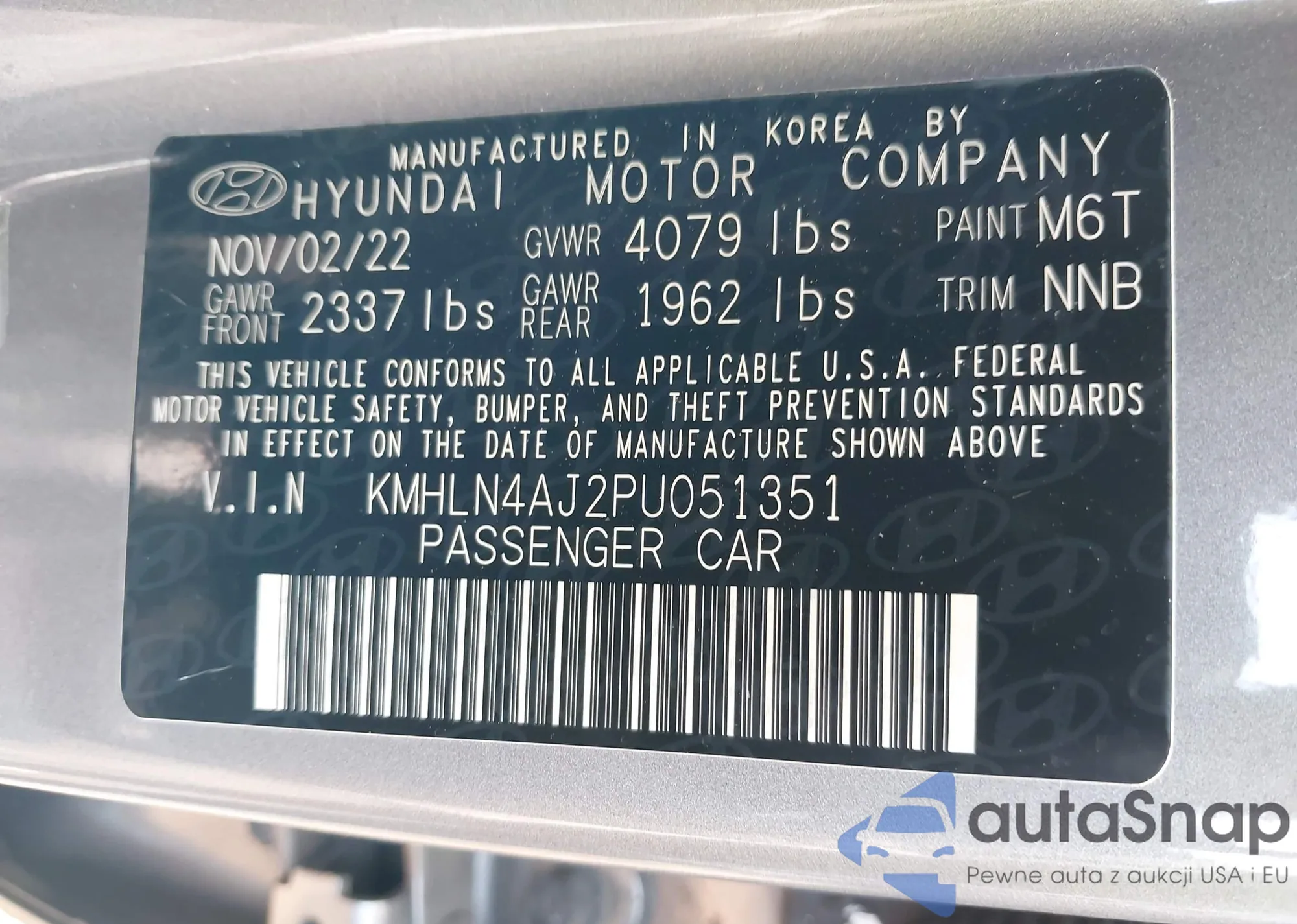 LOT: 42356153 VIN: KMHGN4JE6JU246283