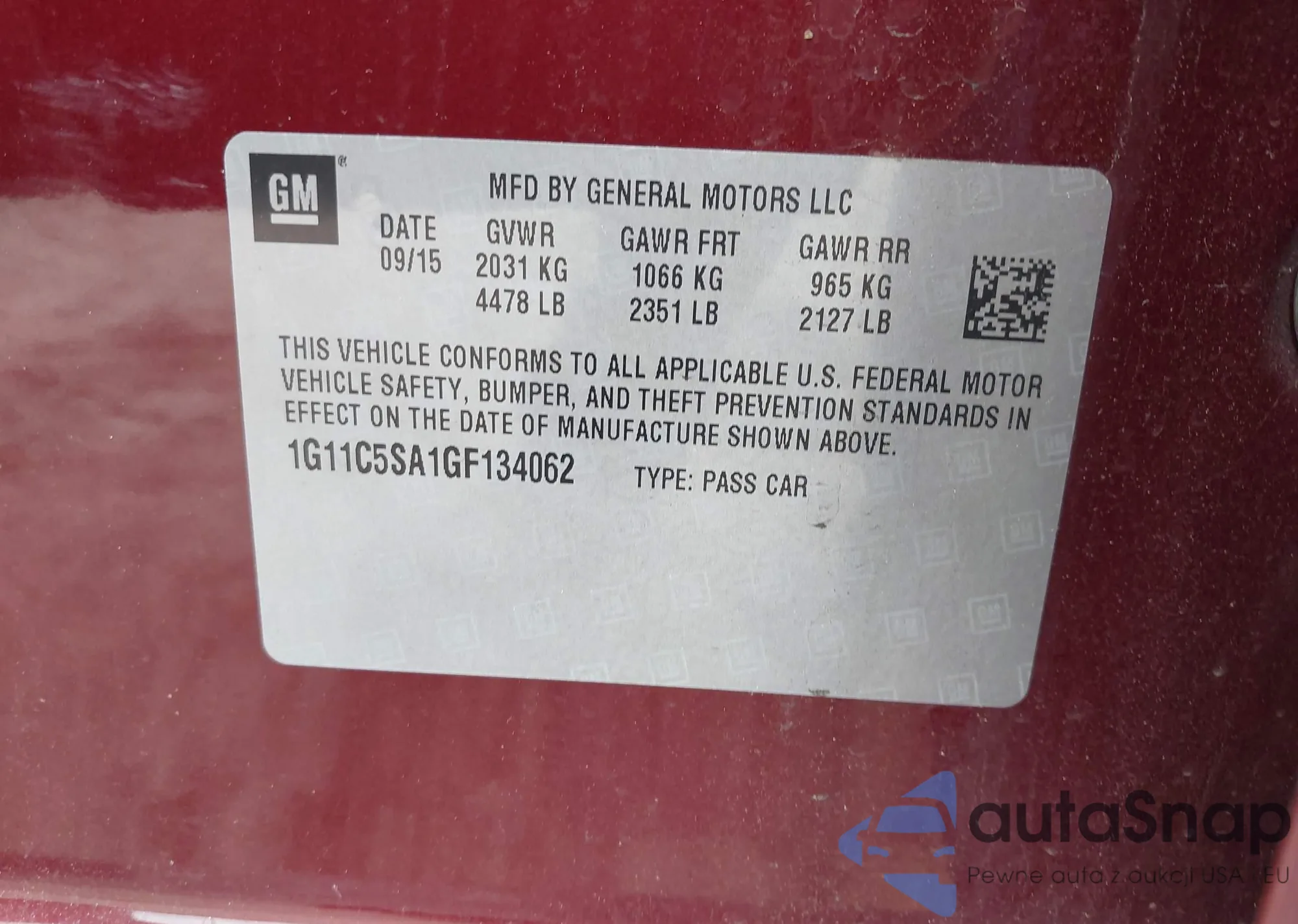 LOT: 42286448 VIN: 1G11C5SA1GF134062