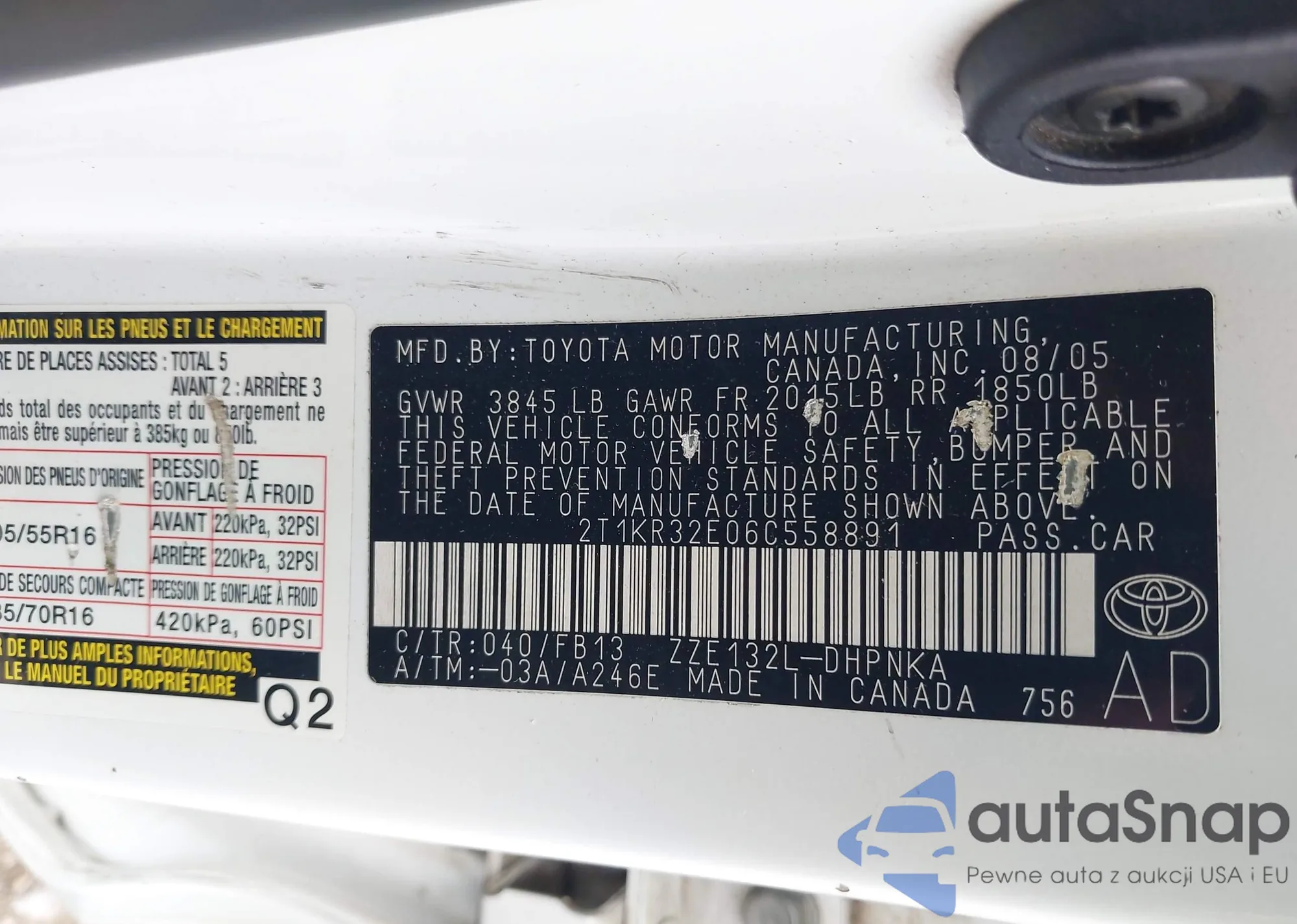 • VIN 2T1KR32E06C558891