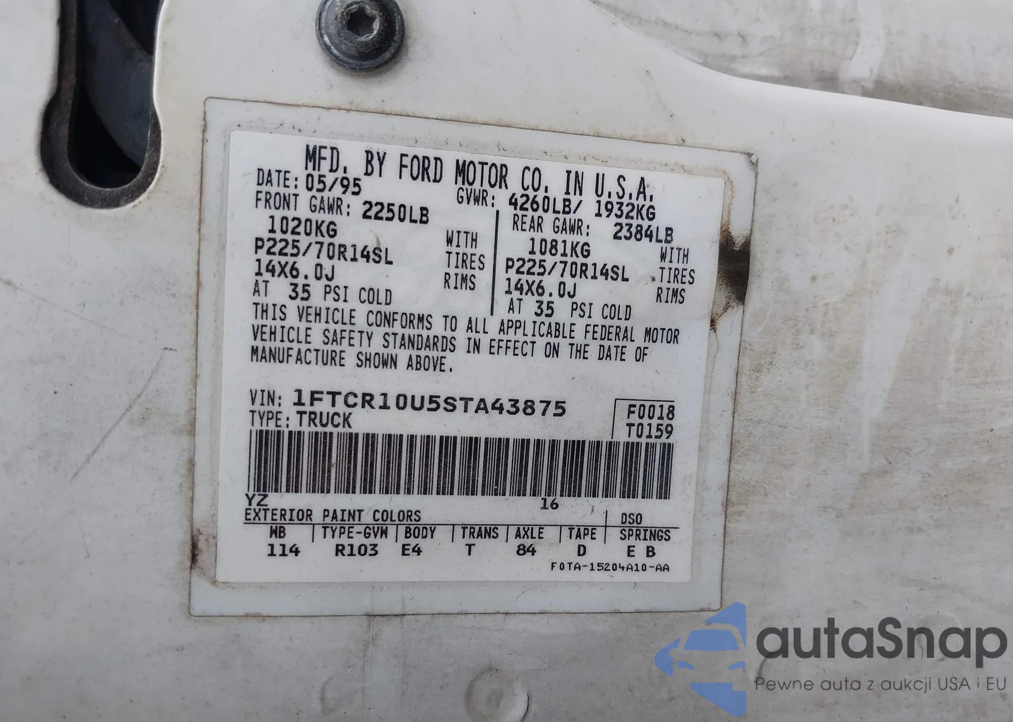 • VIN 1FTCR10AXVTA53330