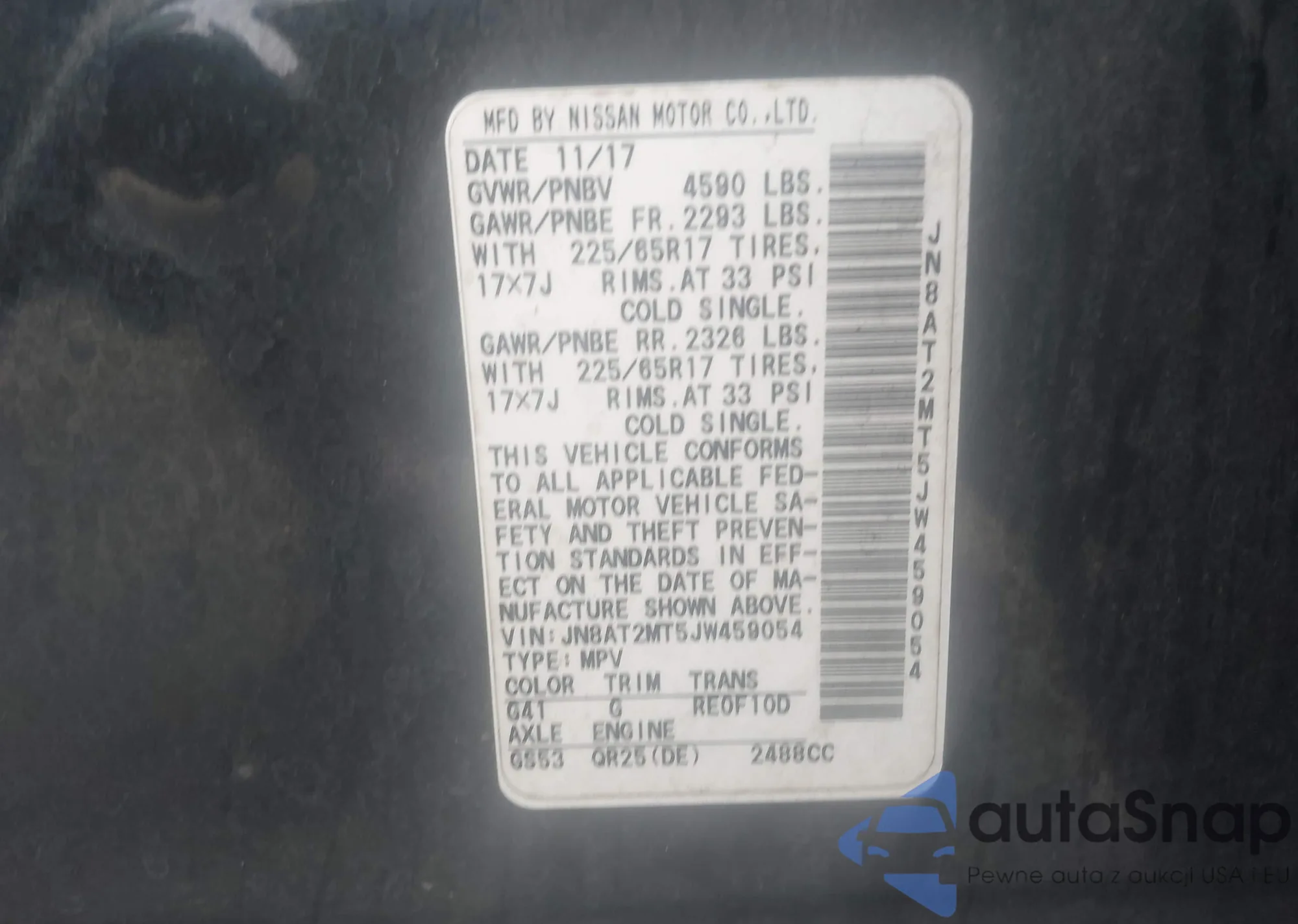 LOT: 42638000 VIN: JN8AT2MT5JW459054