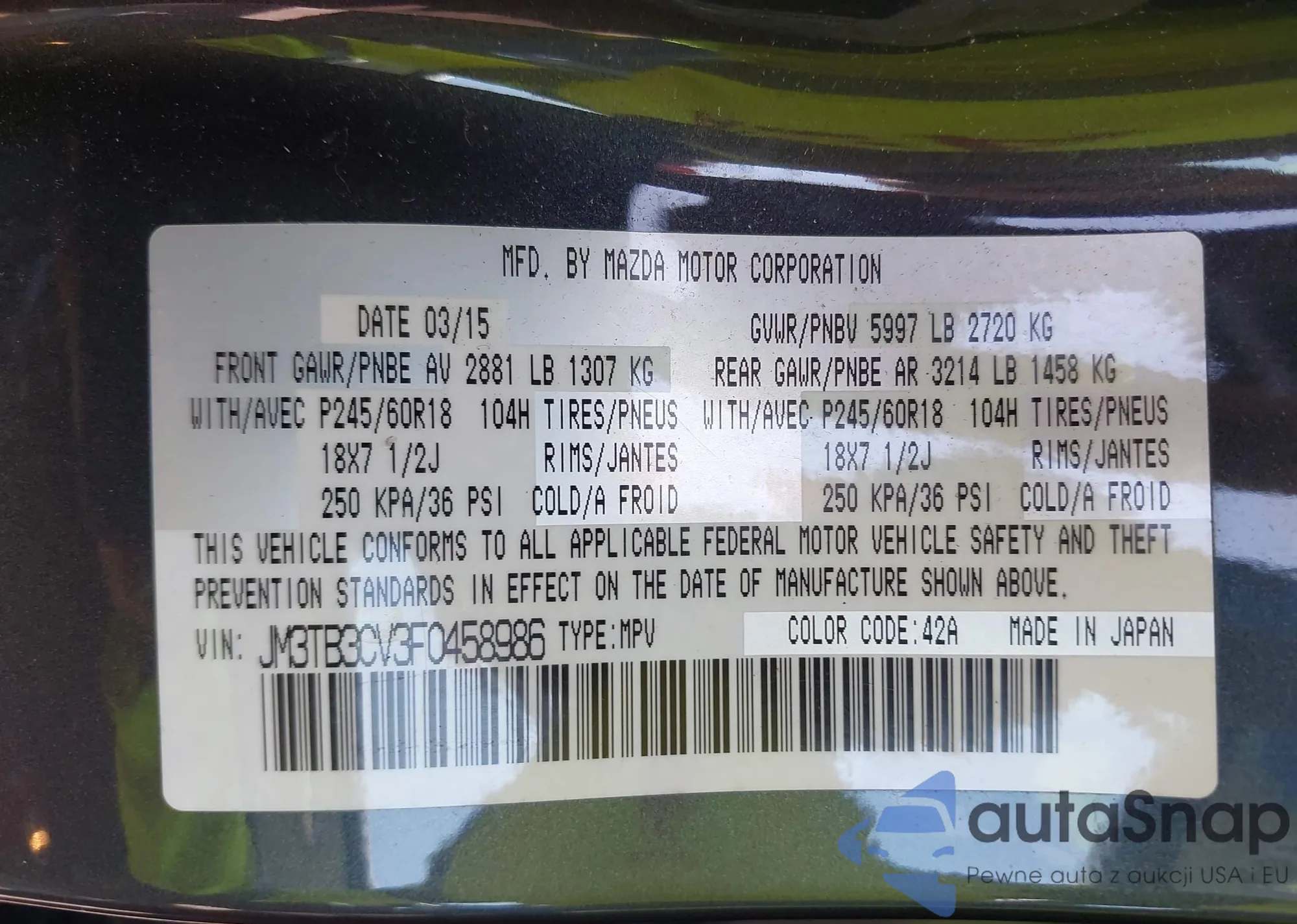 LOT: 42932944 VIN: JM3TB3CV3F0458986