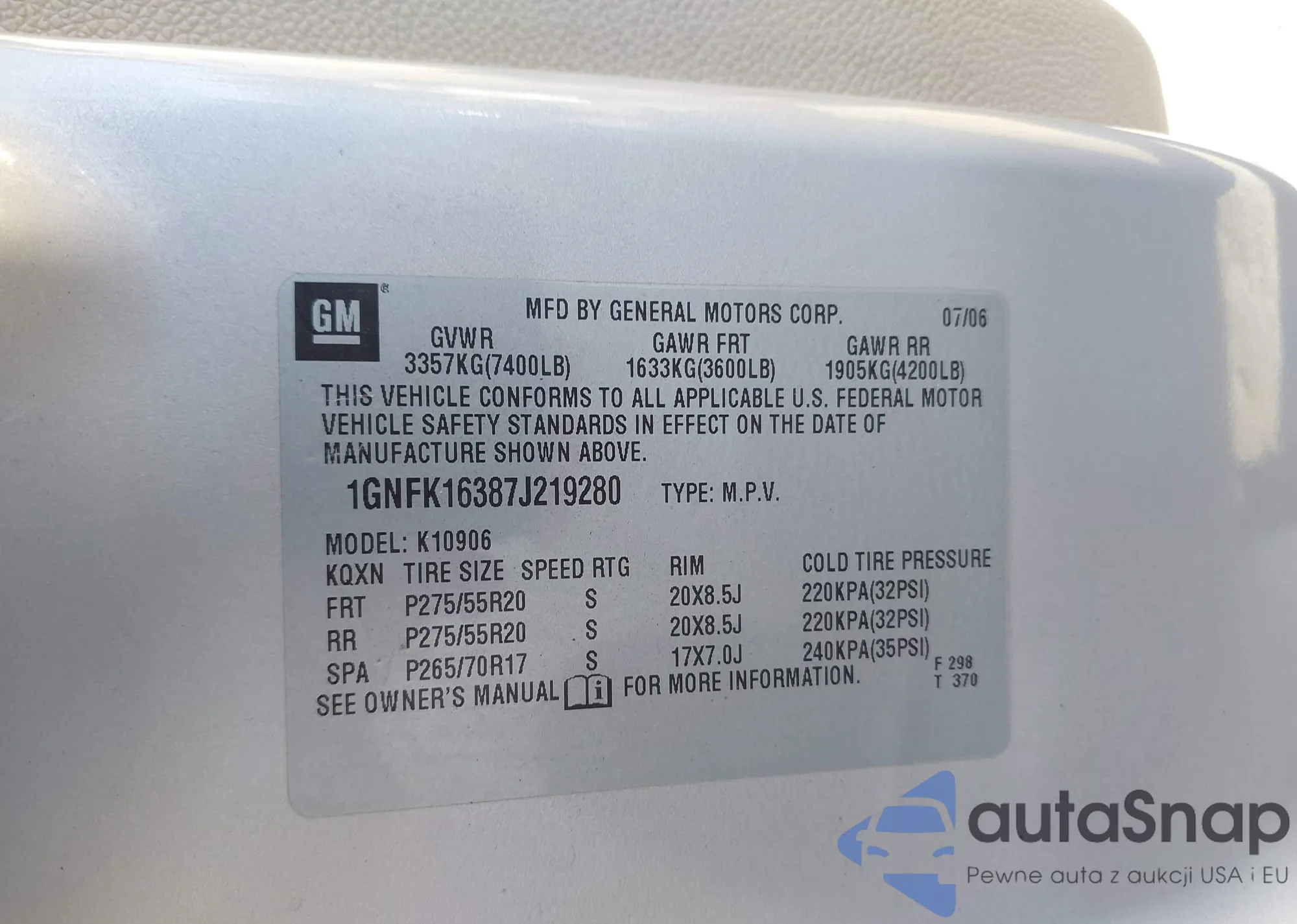 LOT: 42592200 VIN: 1GKKNMLS4MZ209066