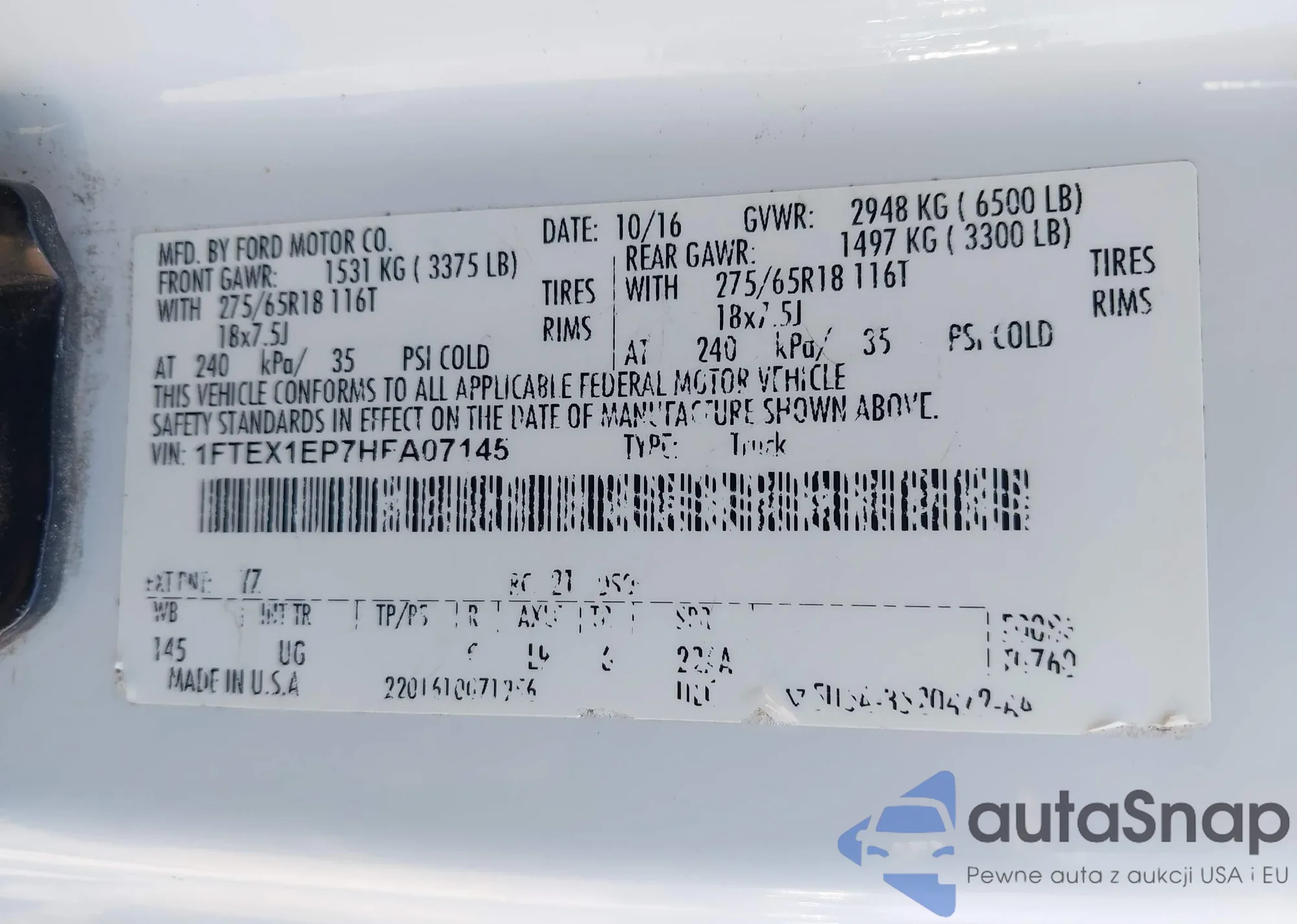 • VIN 1FTEX1EP7HFA07145