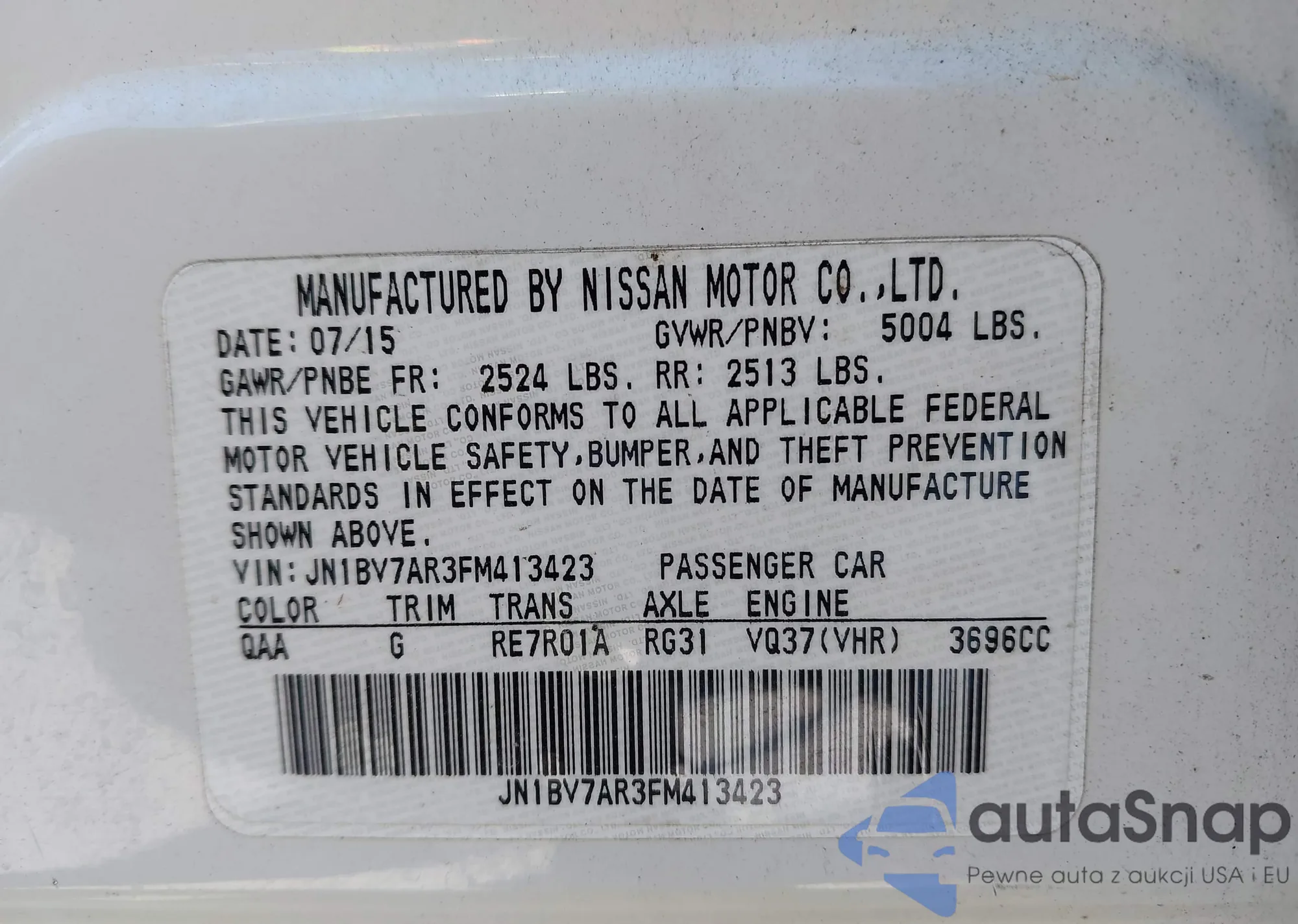 LOT: 42055566 VIN: JN1BV7AR3FM413423