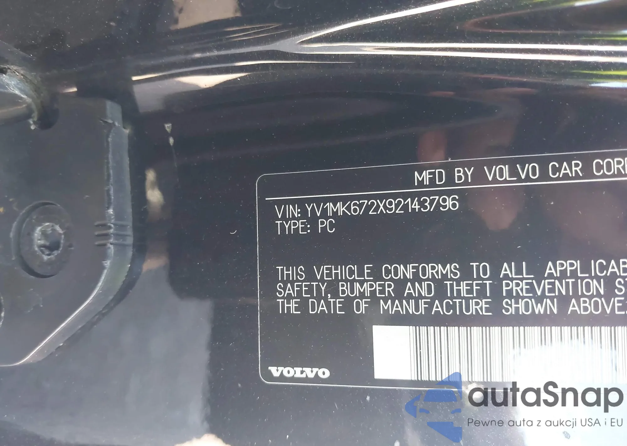 LOT: 42929618 VIN: YV1MK672X92143796