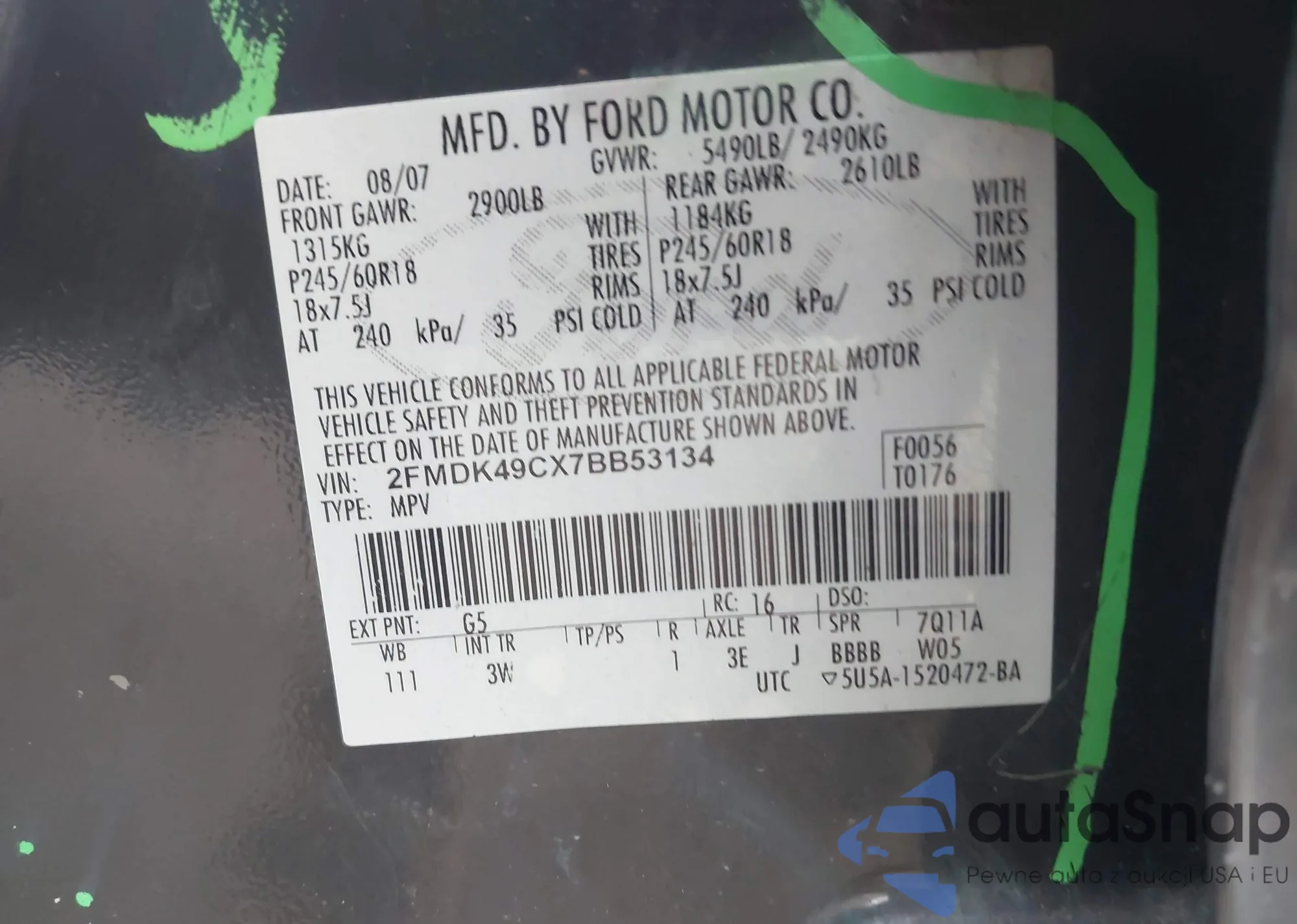 LOT: 42914159 VIN: 1FADP3F23FL244245