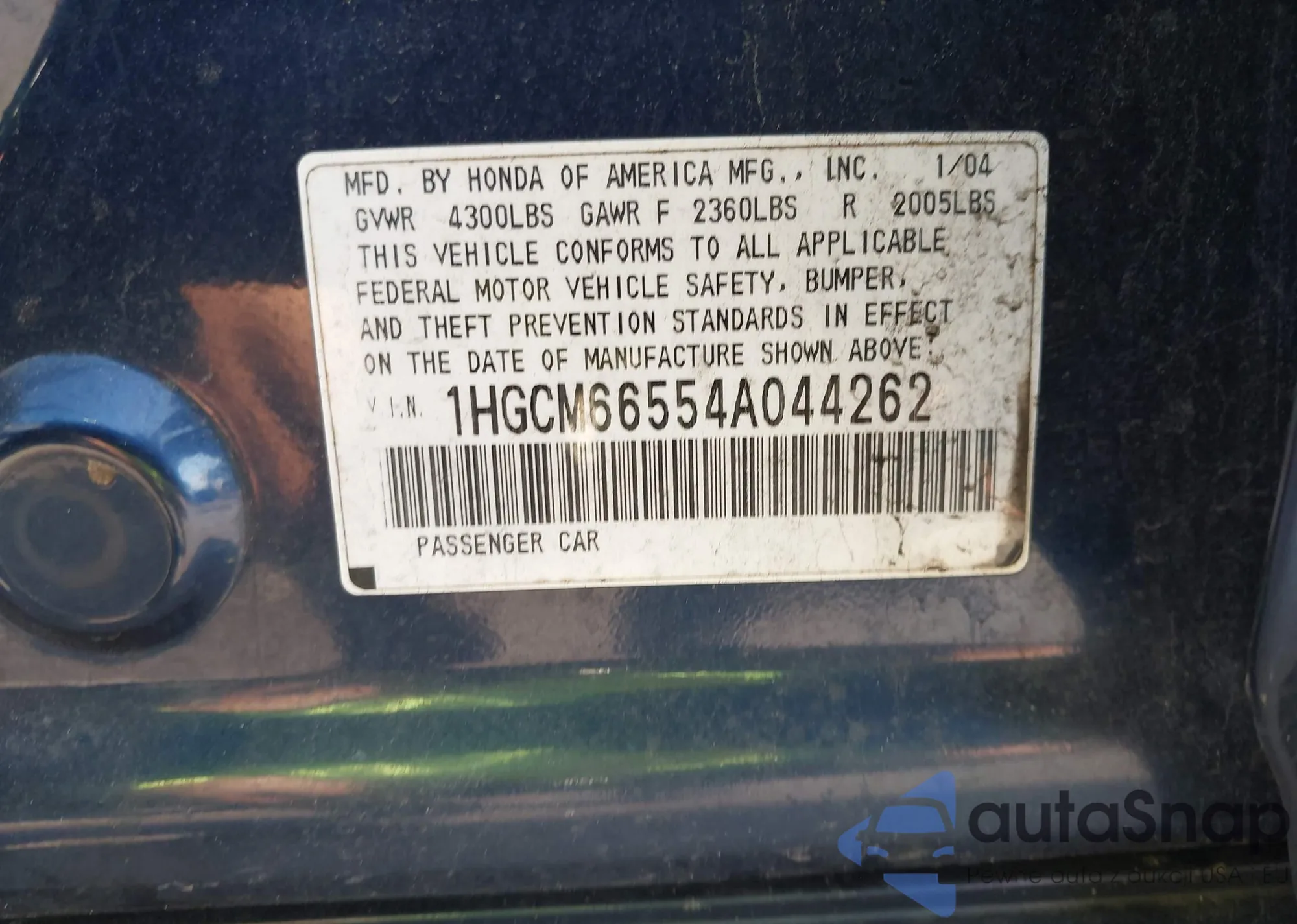 LOT: 42780181 VIN: 1HGCM66554A044262