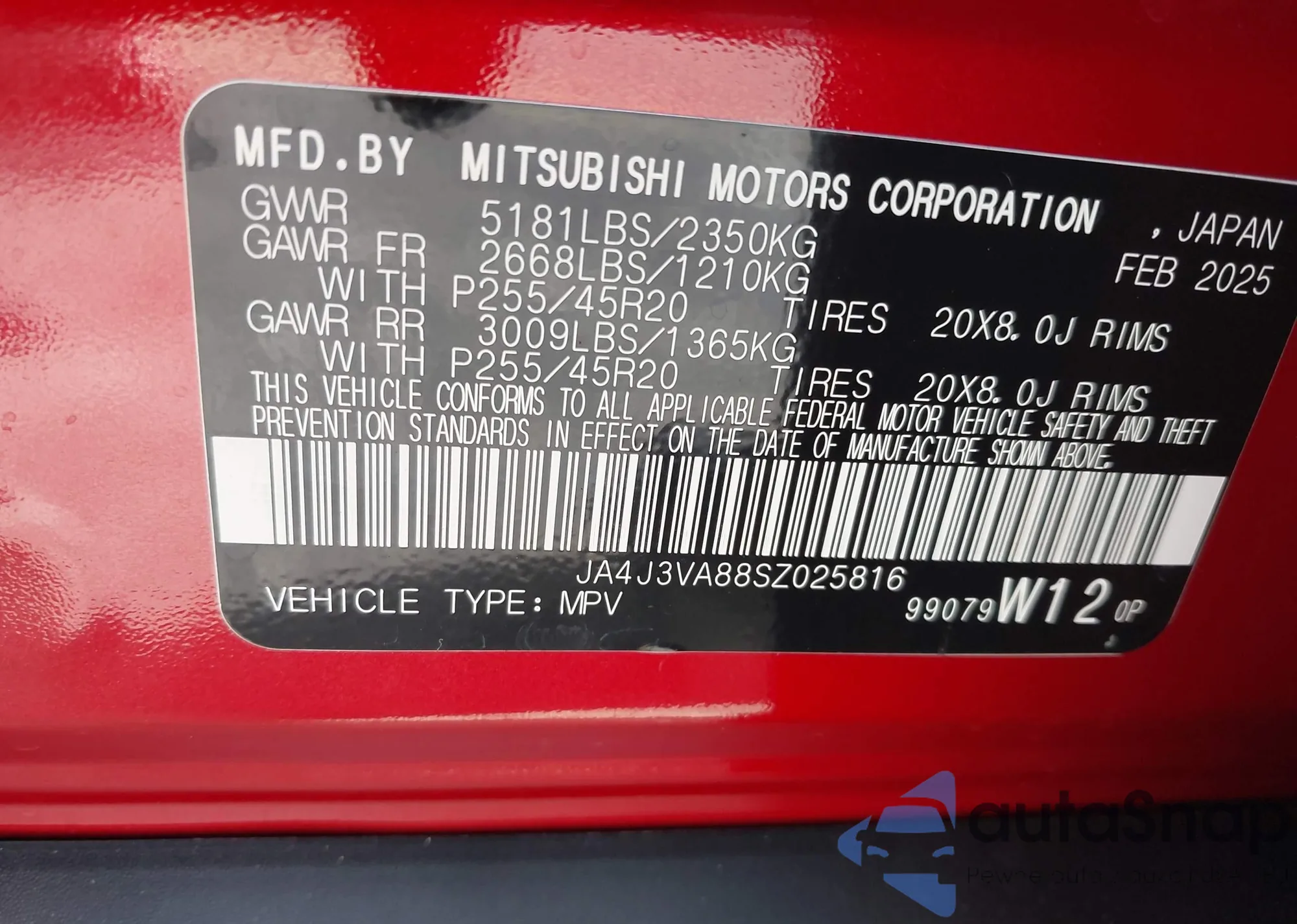 • VIN JA4J3VA88SZ025816