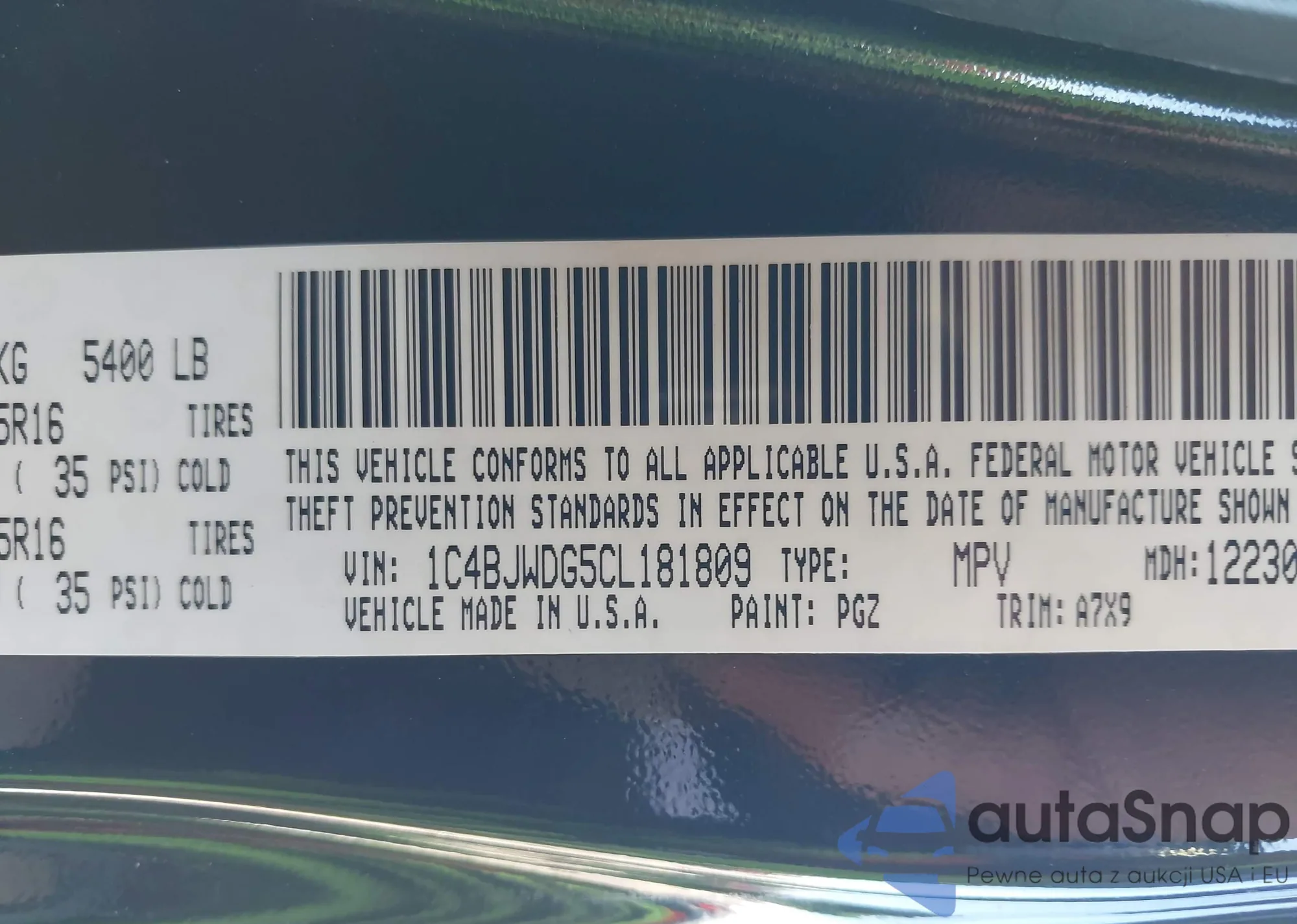 • VIN 1C4BJWDG5CL181809