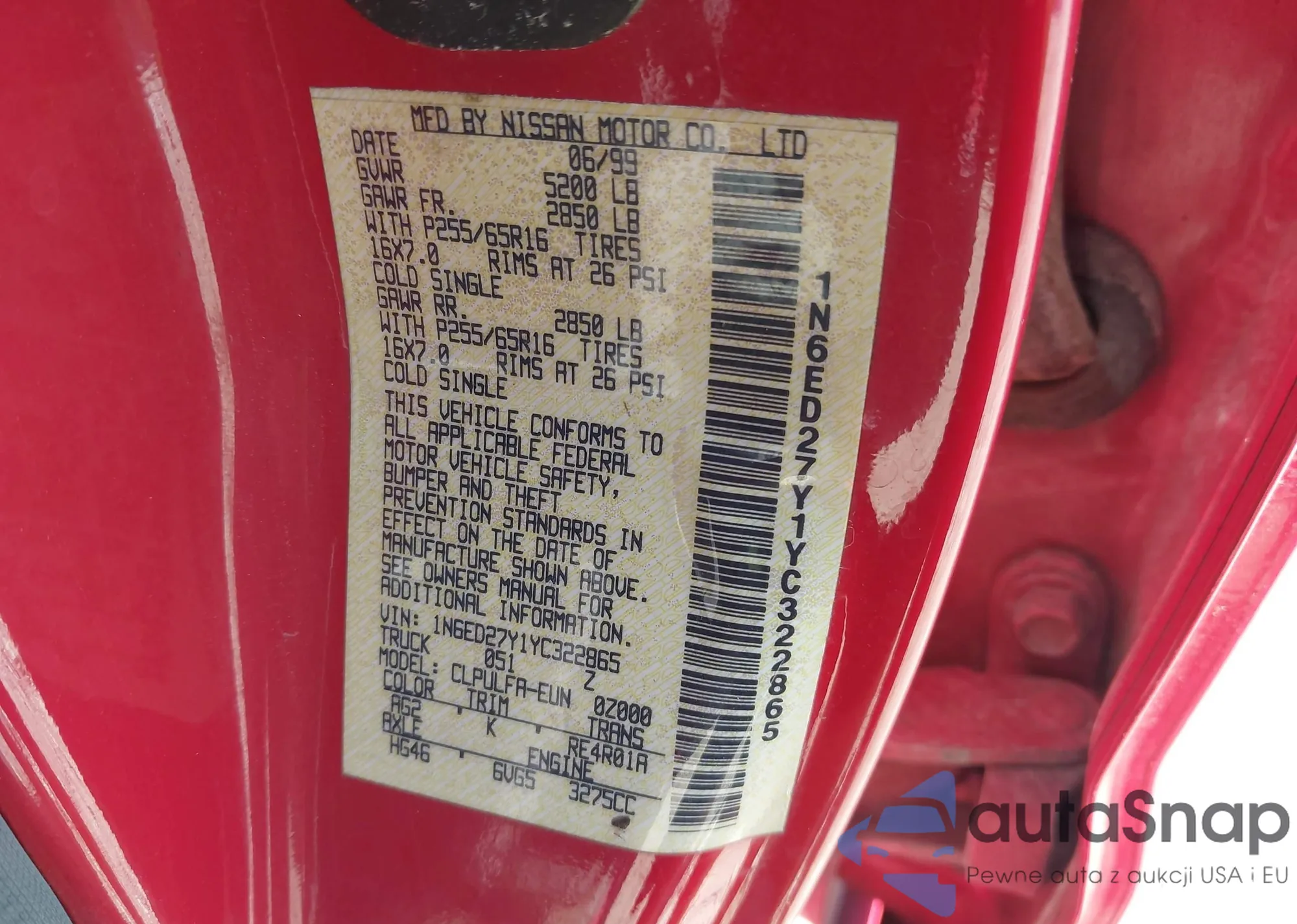 • VIN 1N6ED27Y1YC322865