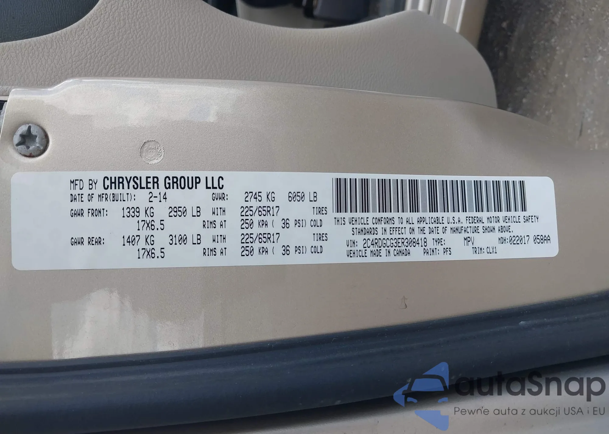 • VIN 2C4RDGCG3ER308418