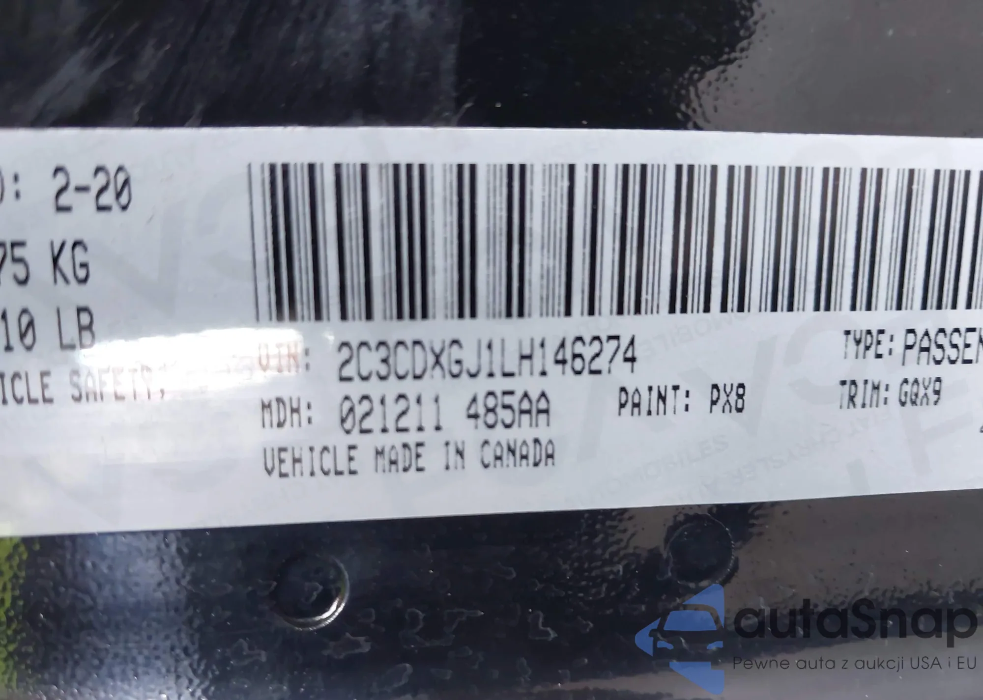 • VIN 2C3CDXGJ1LH146274