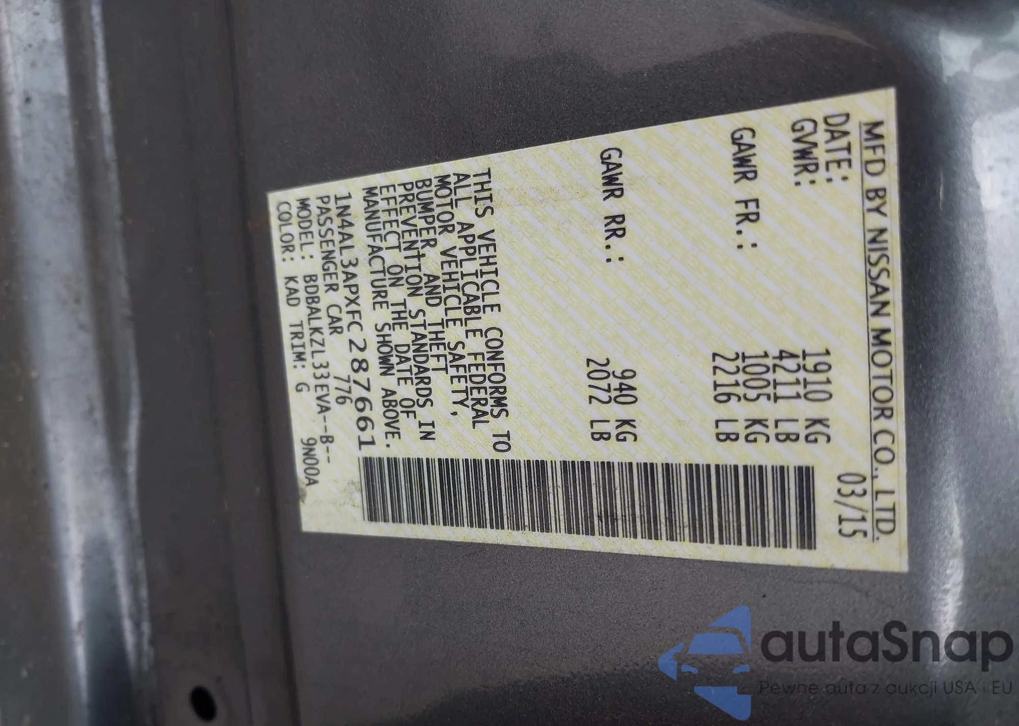 LOT: 43086448 VIN: WDDSJ4EB0FN215208