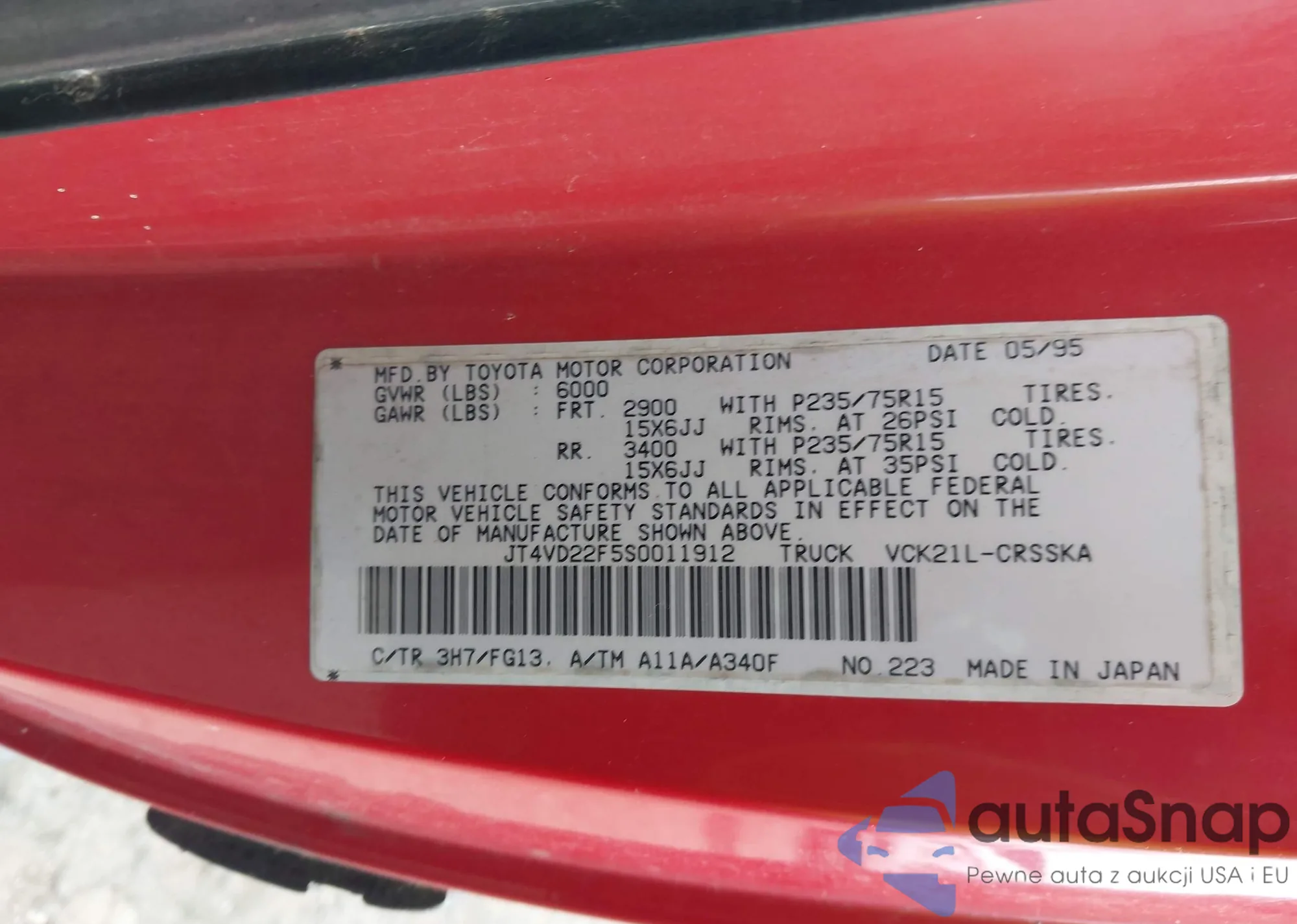 LOT: 43062391 VIN: JT4VD22F5S0011912