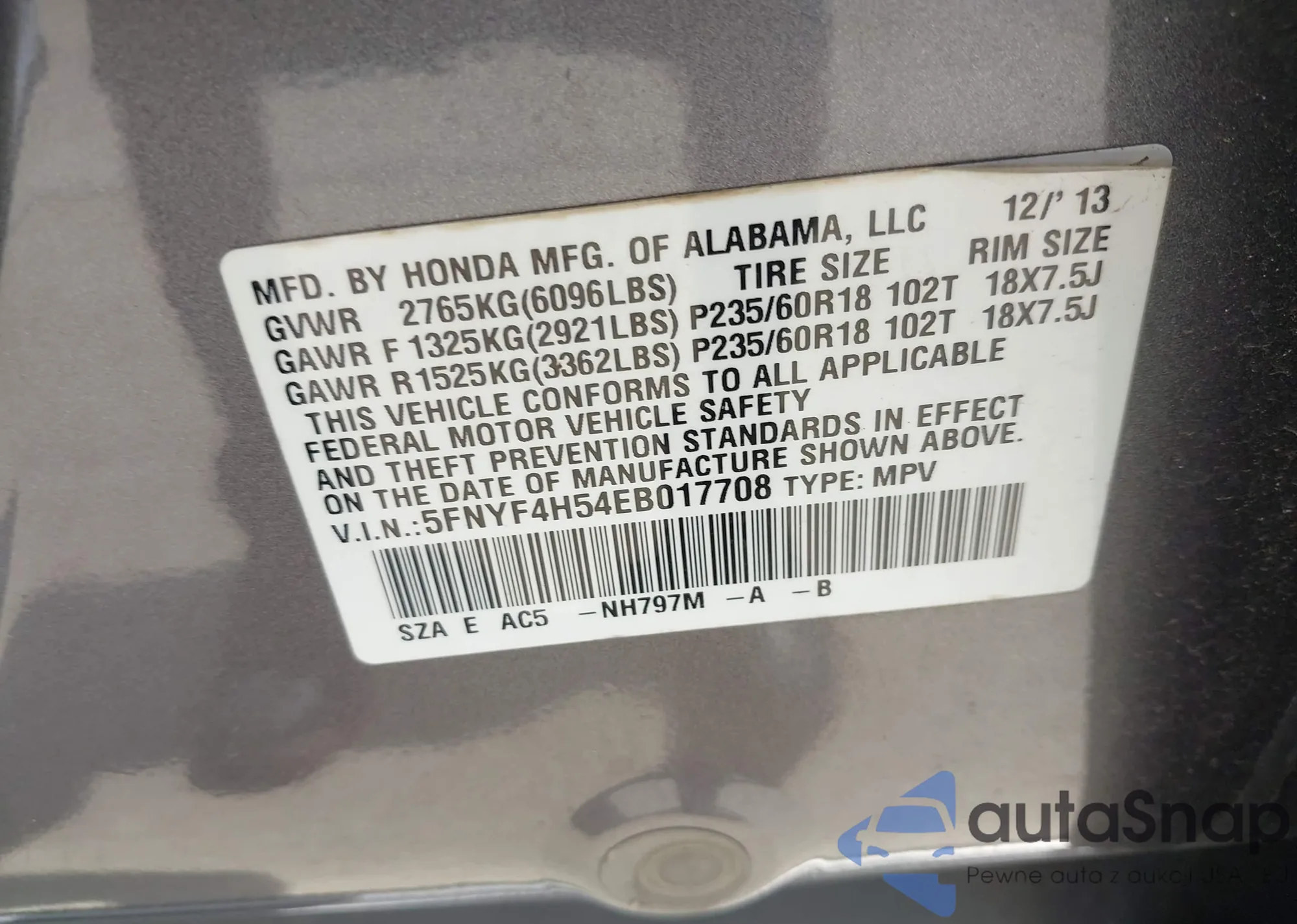 LOT: 43107214 VIN: KNDJX3A54E7704647