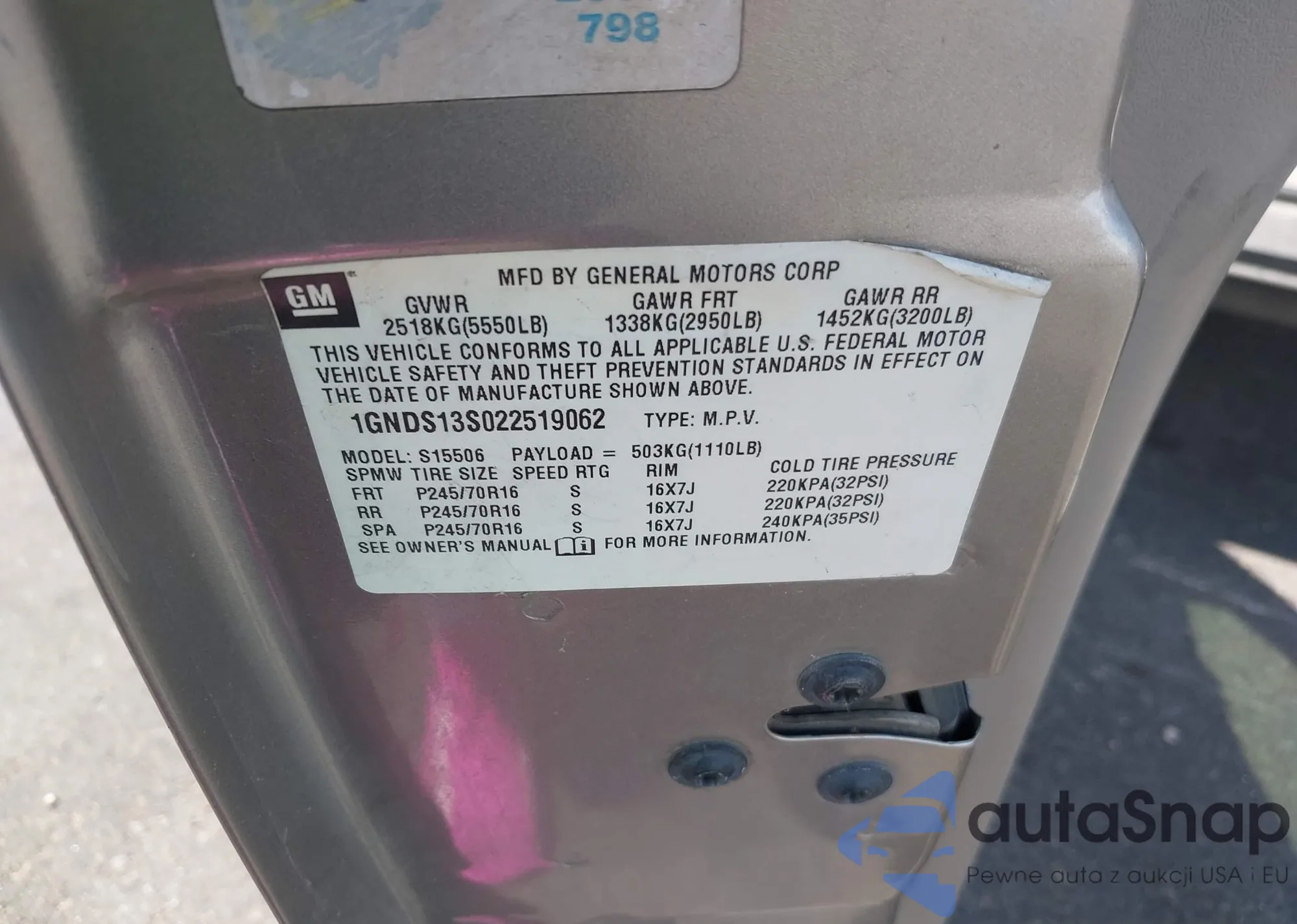 LOT: 43099771 VIN: 3TMLB5JN1SM116032