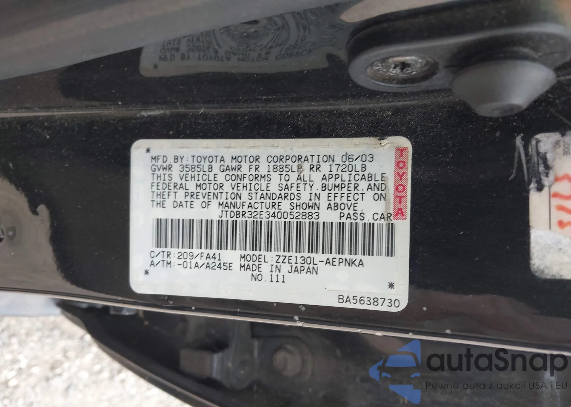 LOT: 43098801 VIN: JTDBR32E340052883