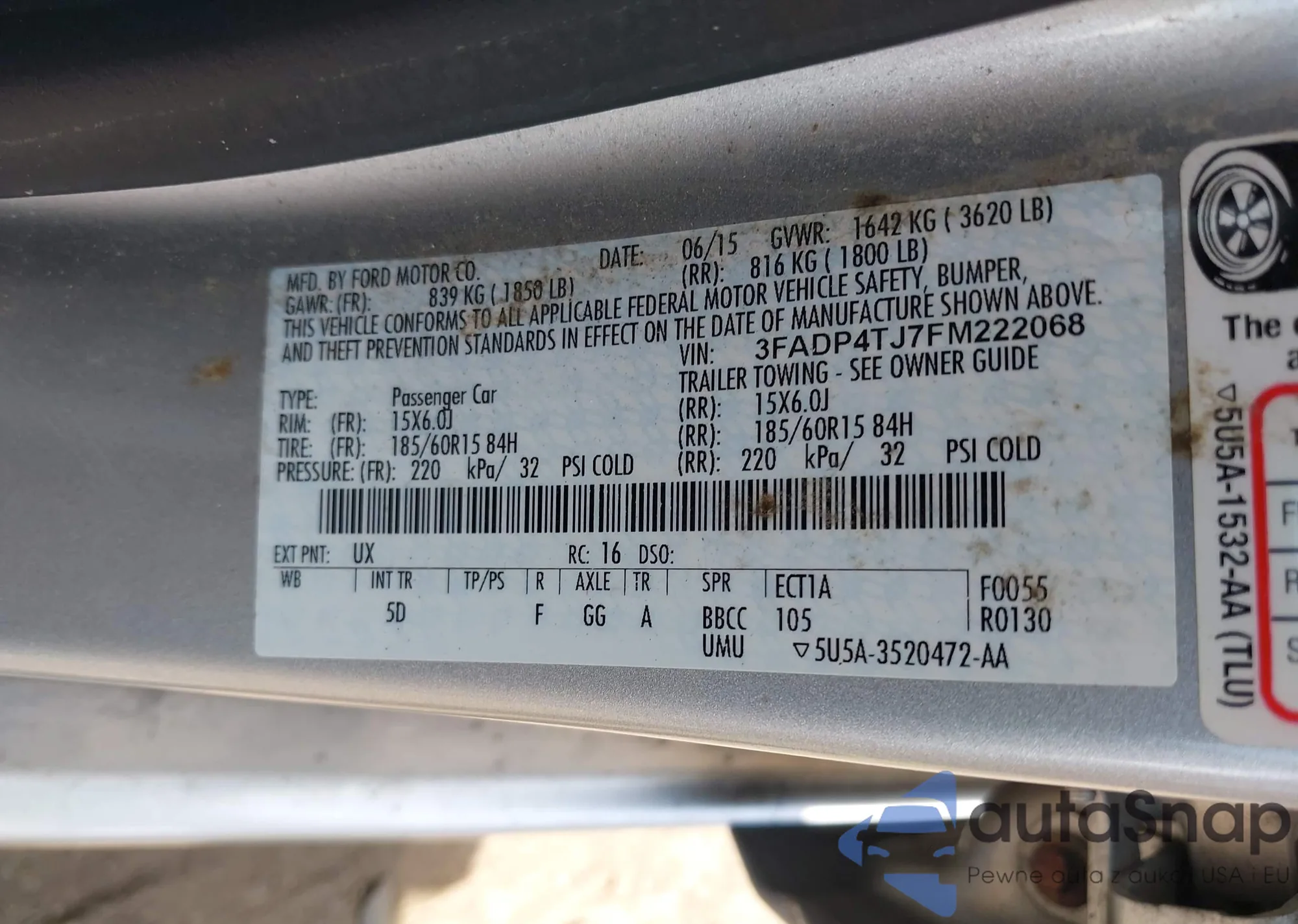 LOT: 43101955 VIN: 3FADP4TJ7FM222068