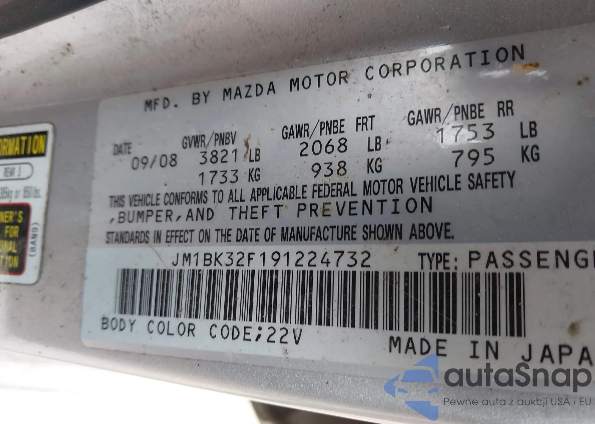 LOT: 43033759 VIN: JM1BK32F191224732