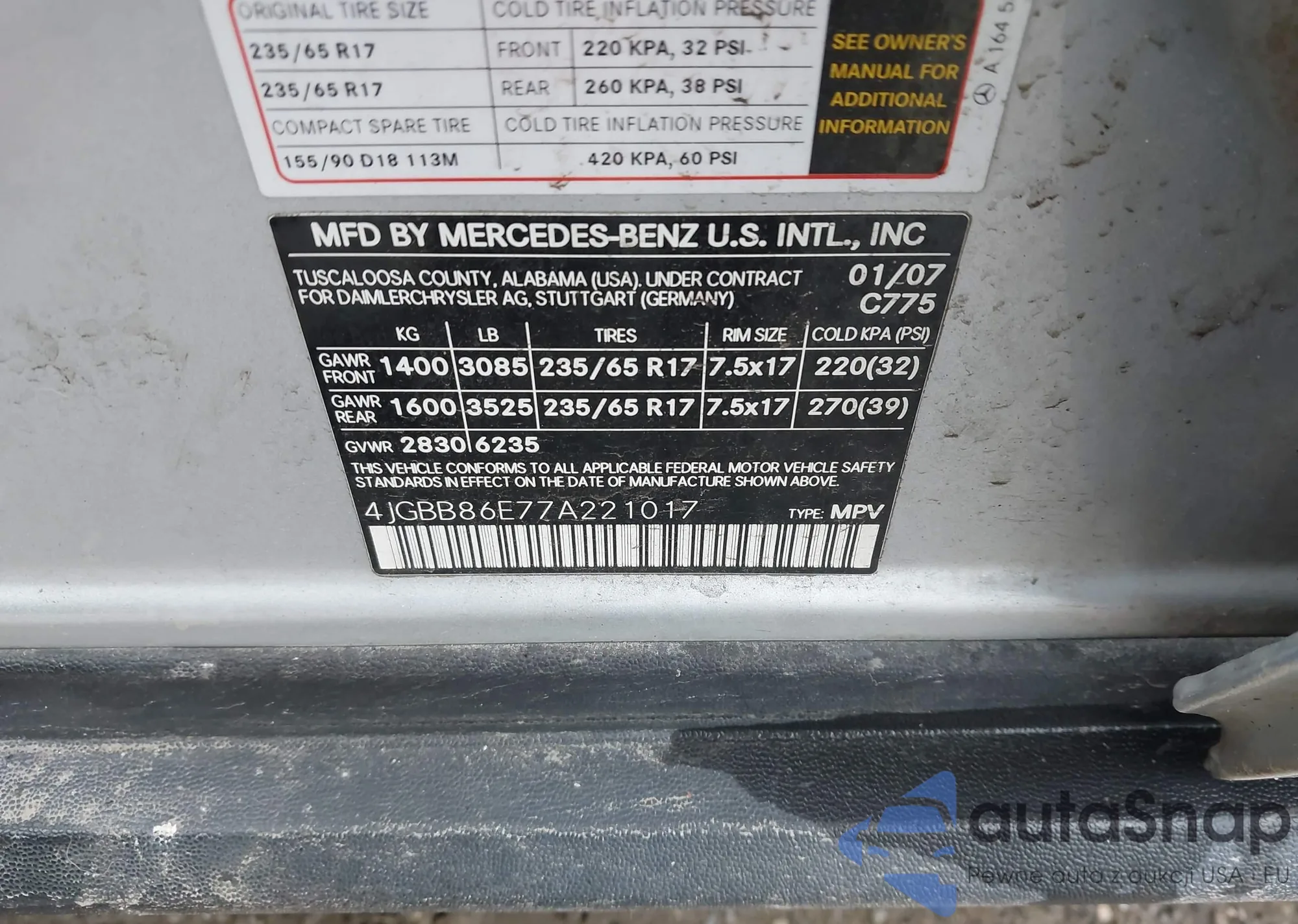 • VIN 4JGBB86E77A221017