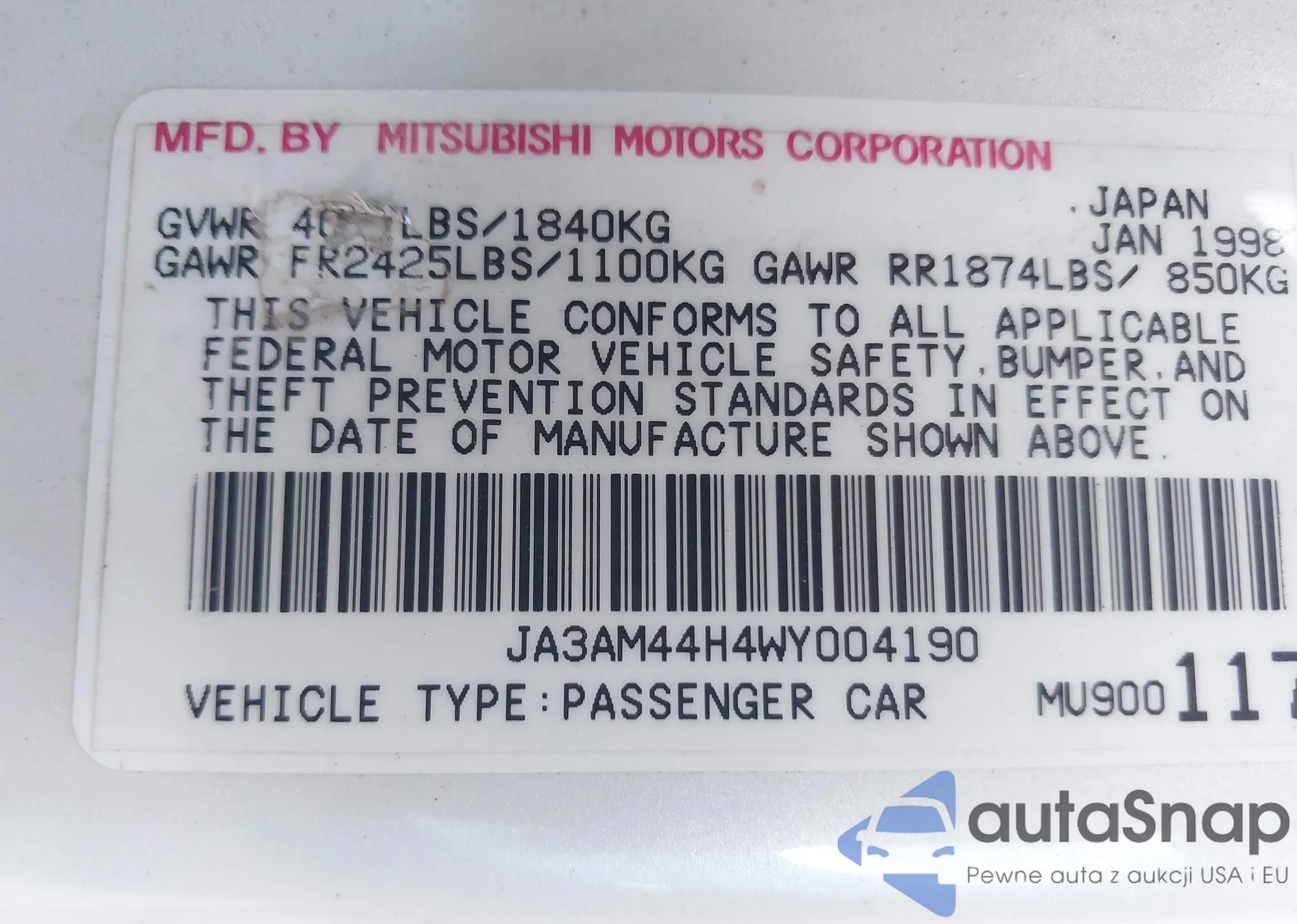 • VIN JM1NC2FFXA0212717