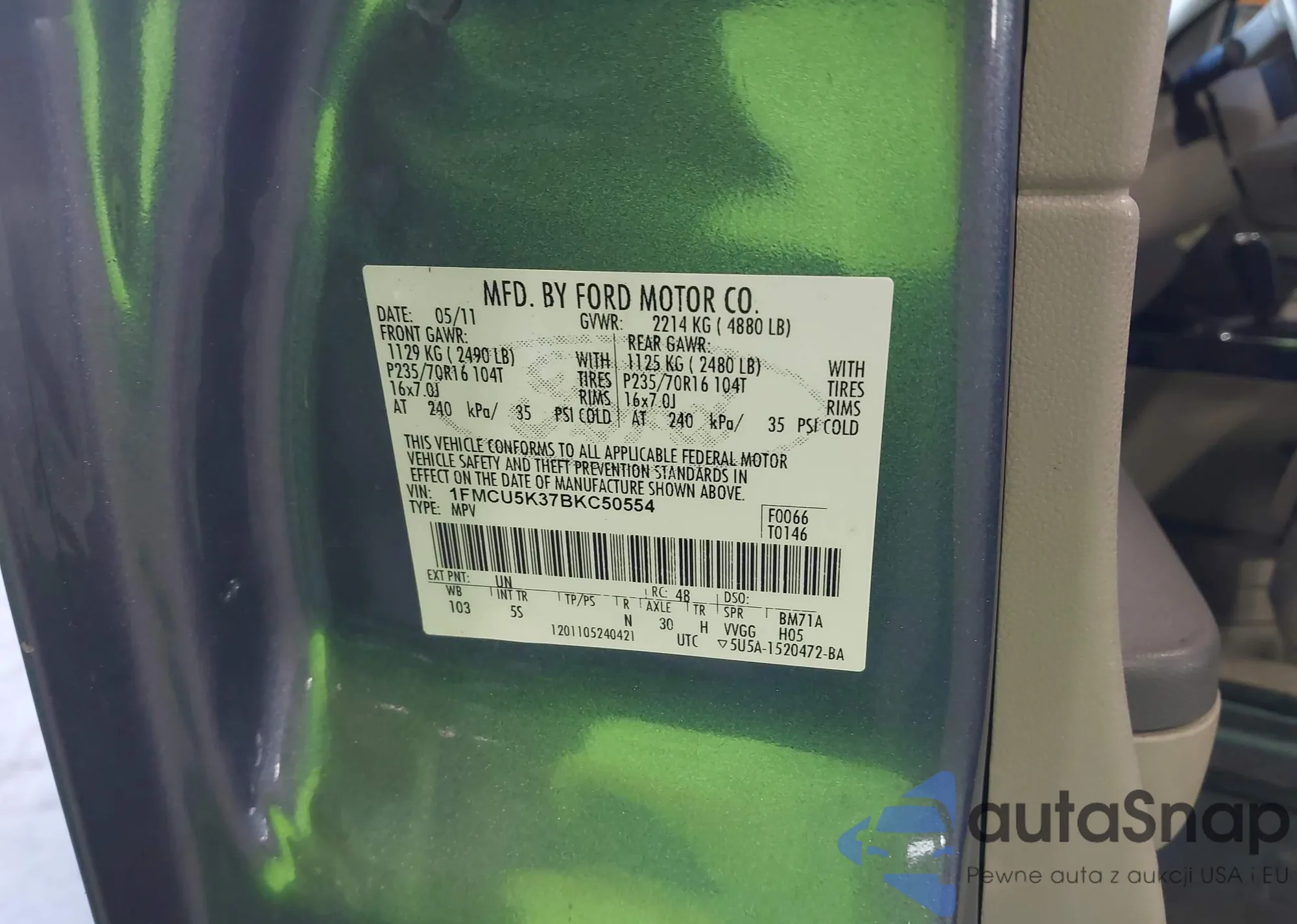 • VIN 1FMCU5K37BKC50554