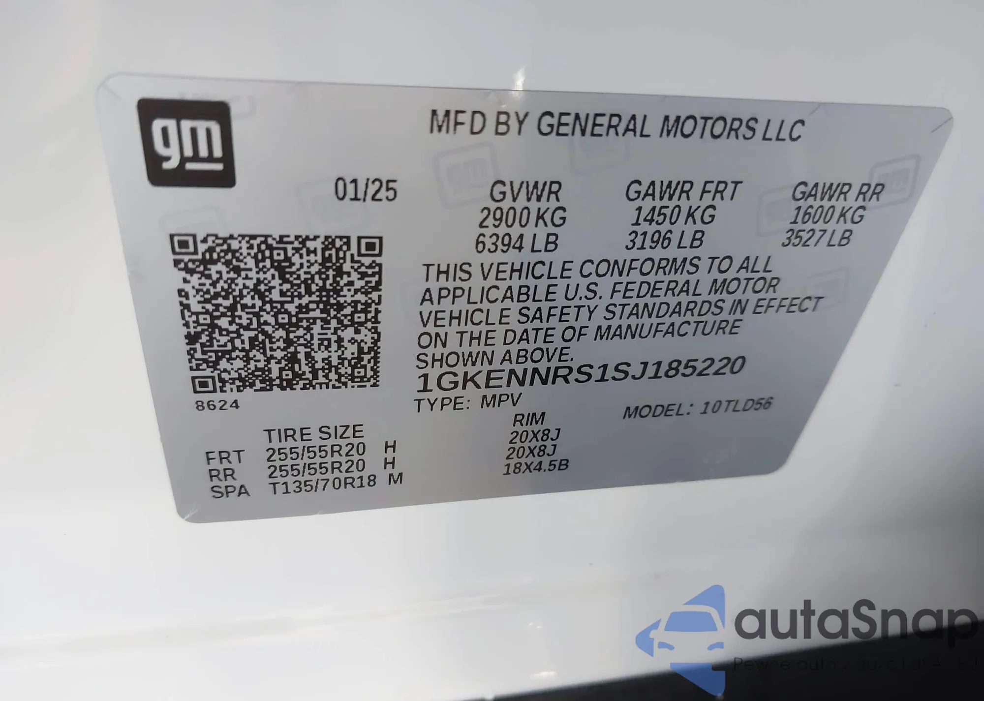 • VIN 1GKENNRS1SJ185220
