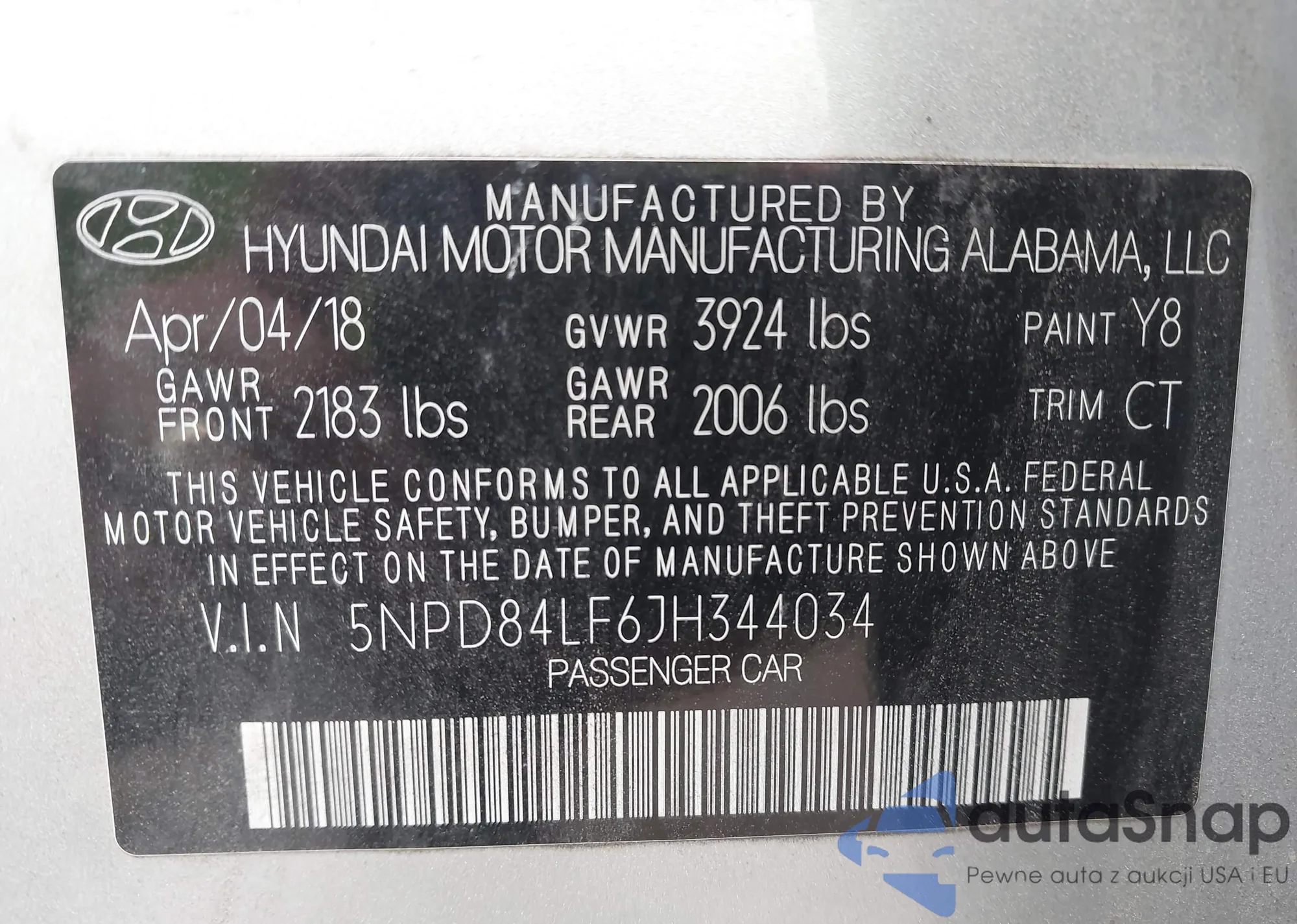 • VIN 5NPD84LF6JH344034