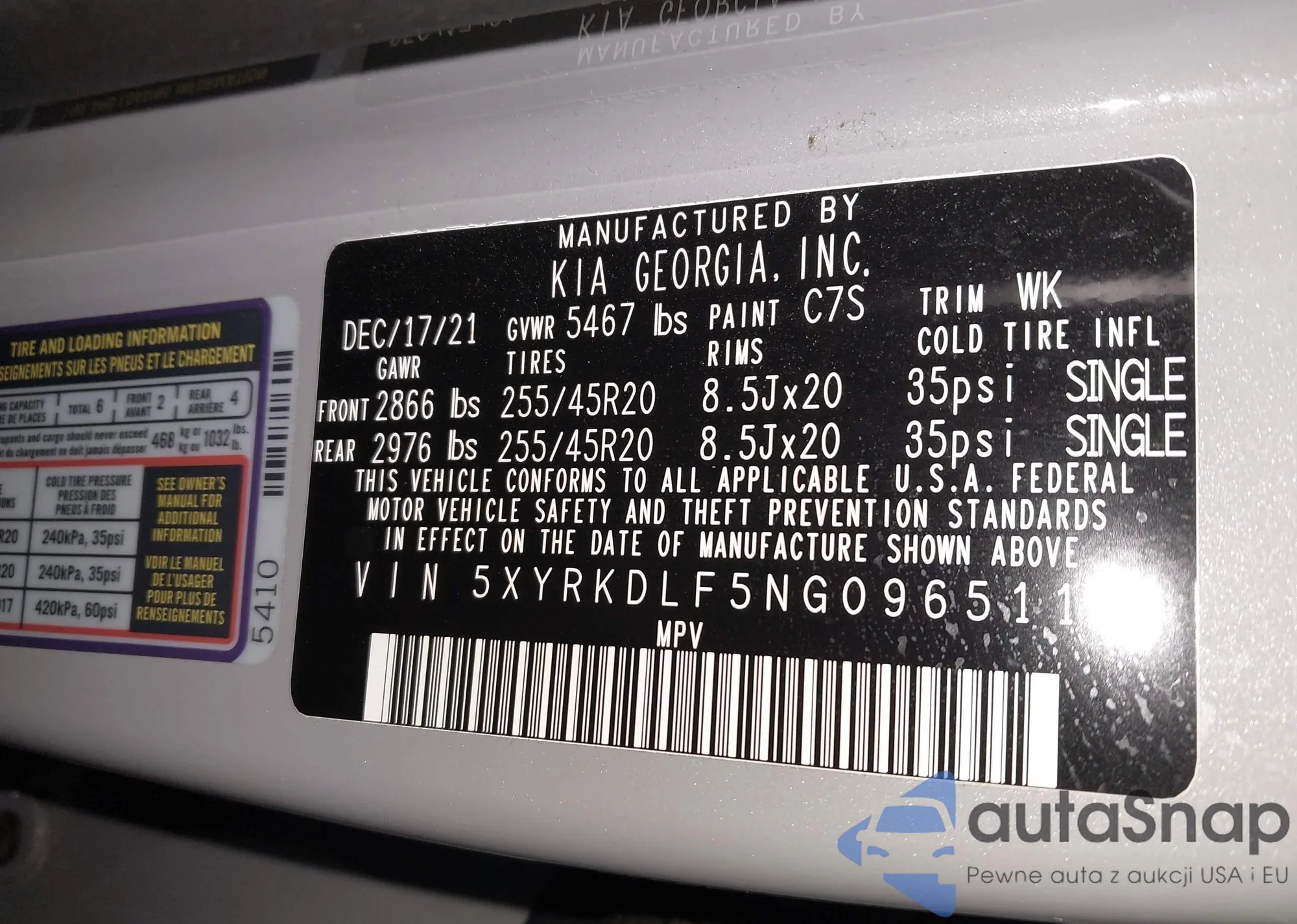 • VIN 5XYRKDLF5NG096511