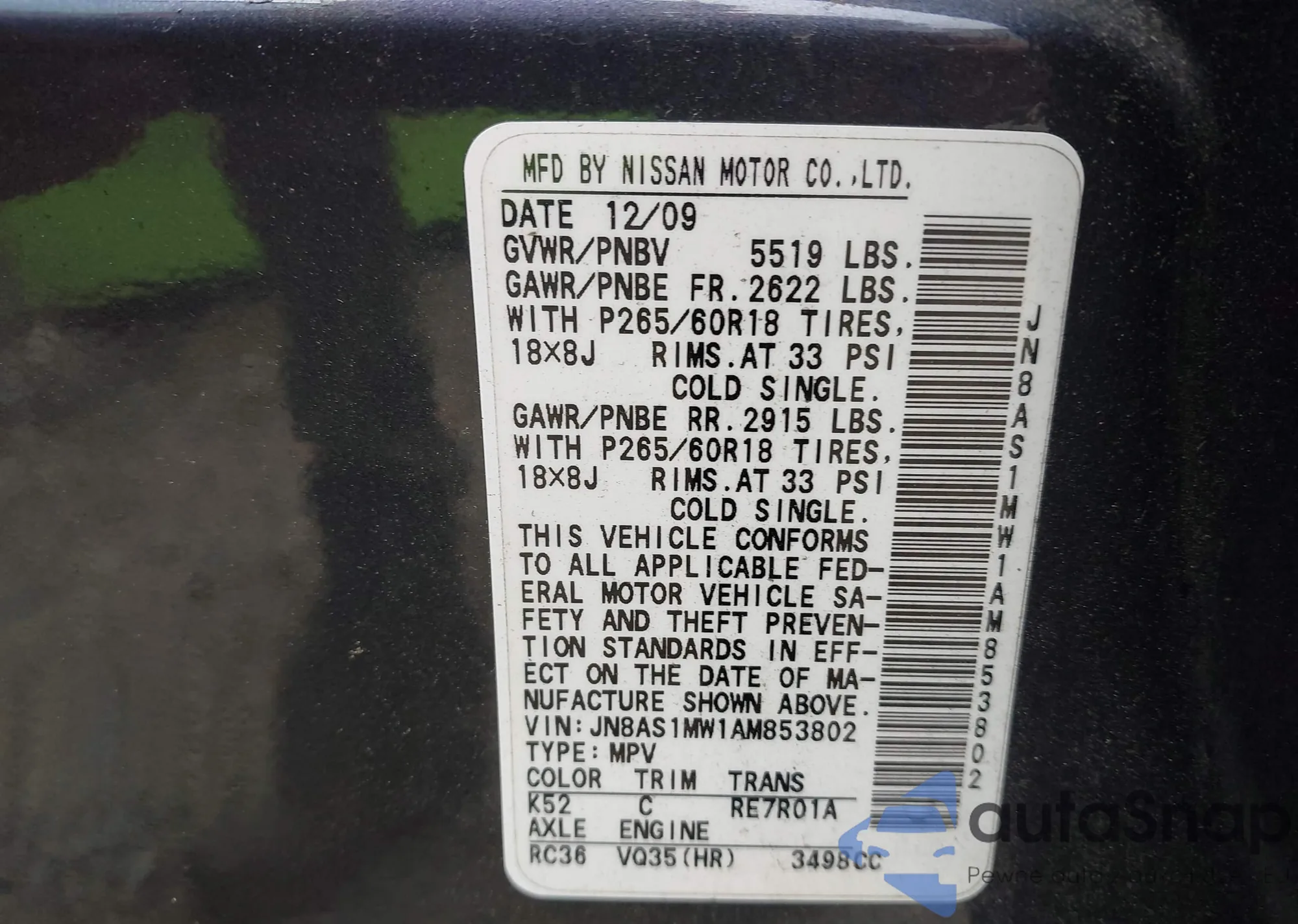 • VIN JN8AS1MW1AM853802