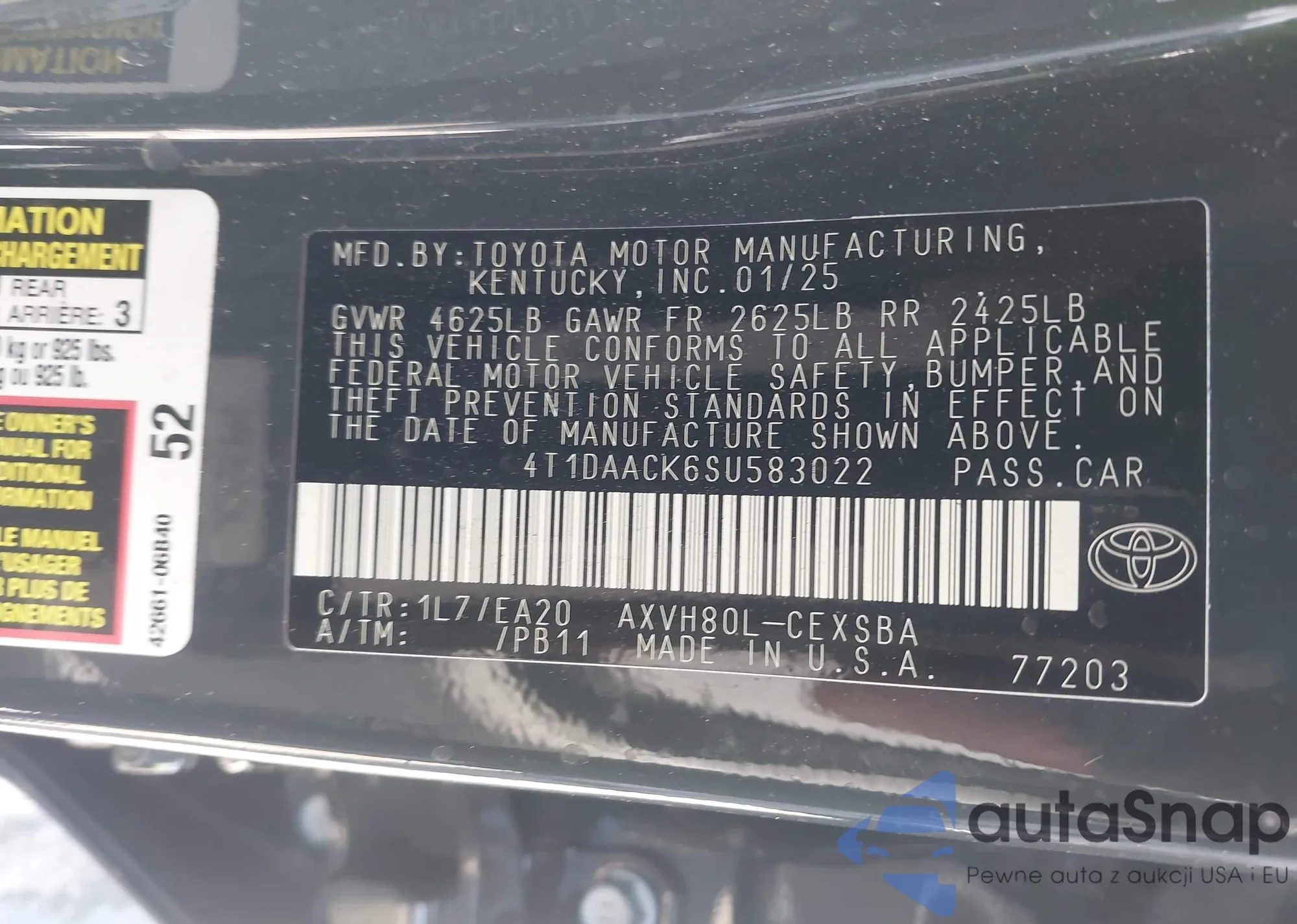 LOT: 42920916 VIN: 4T1F31AK5PU617979