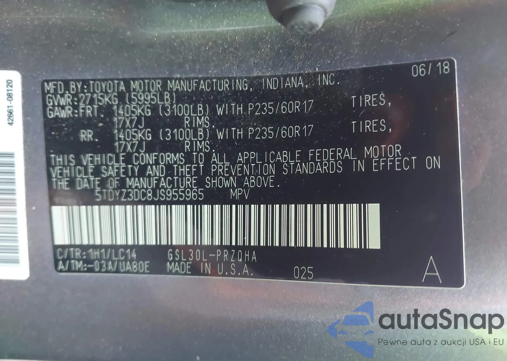 • VIN 5TDYZ3DC8JS955965