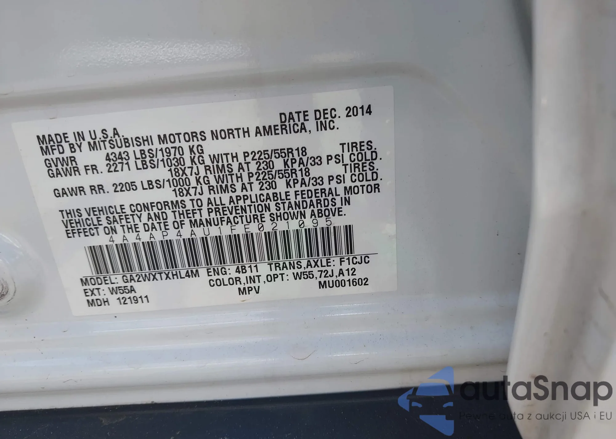 LOT: 43003981 VIN: WBXYN1C57KEF29605